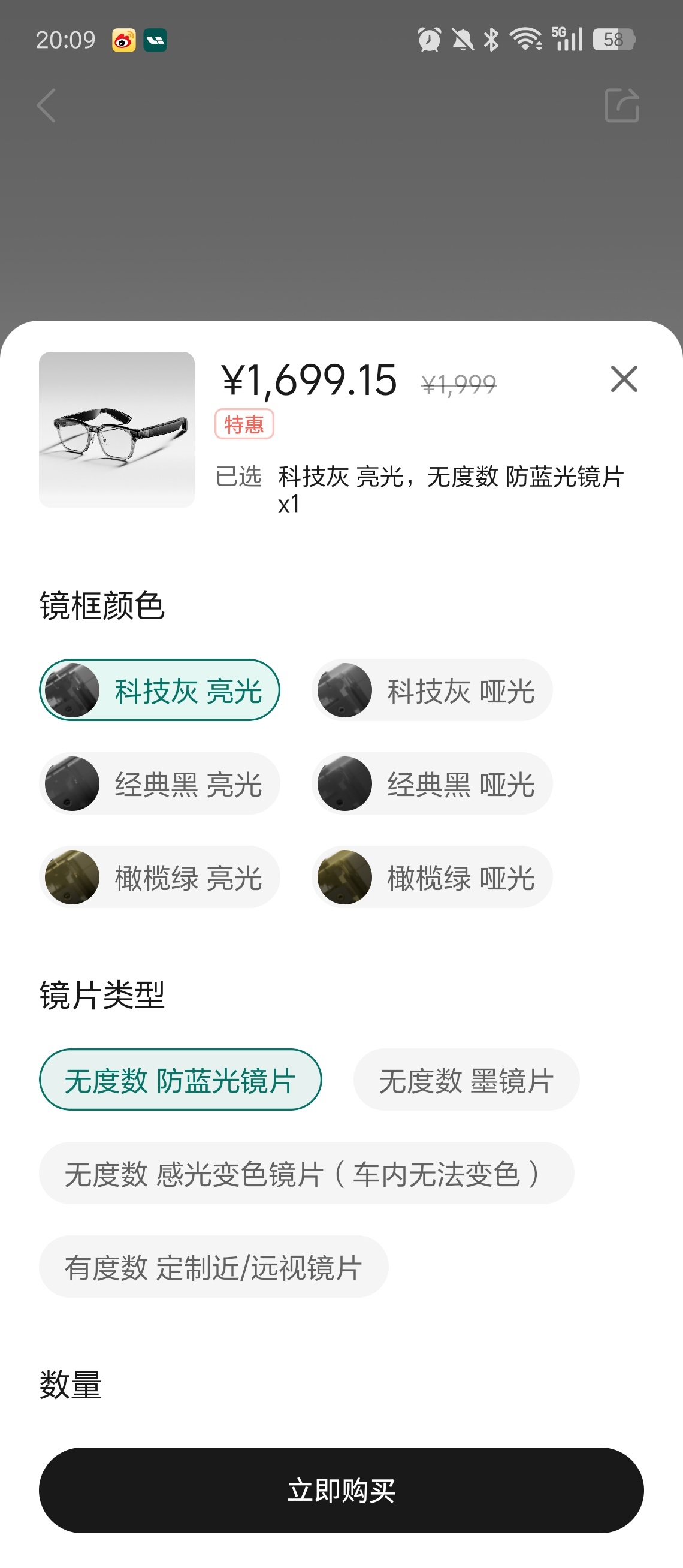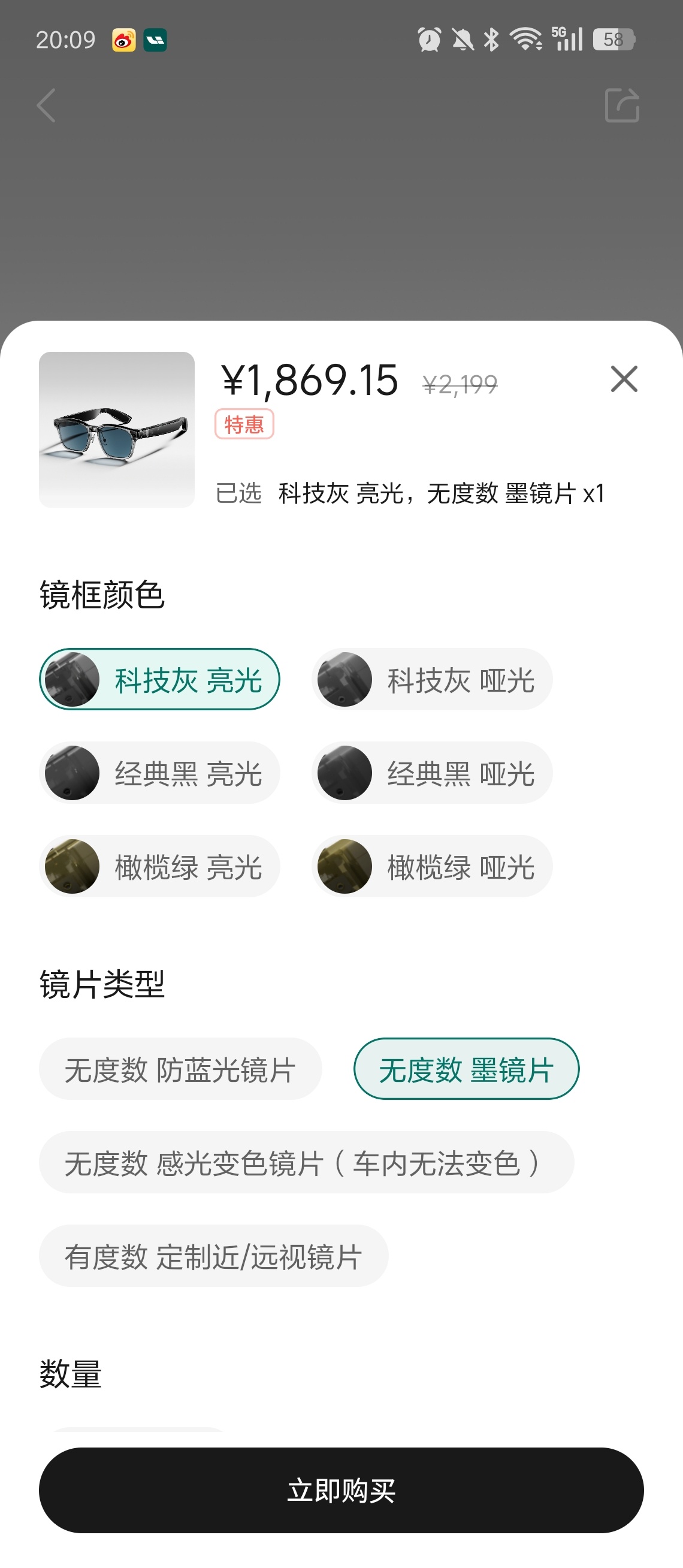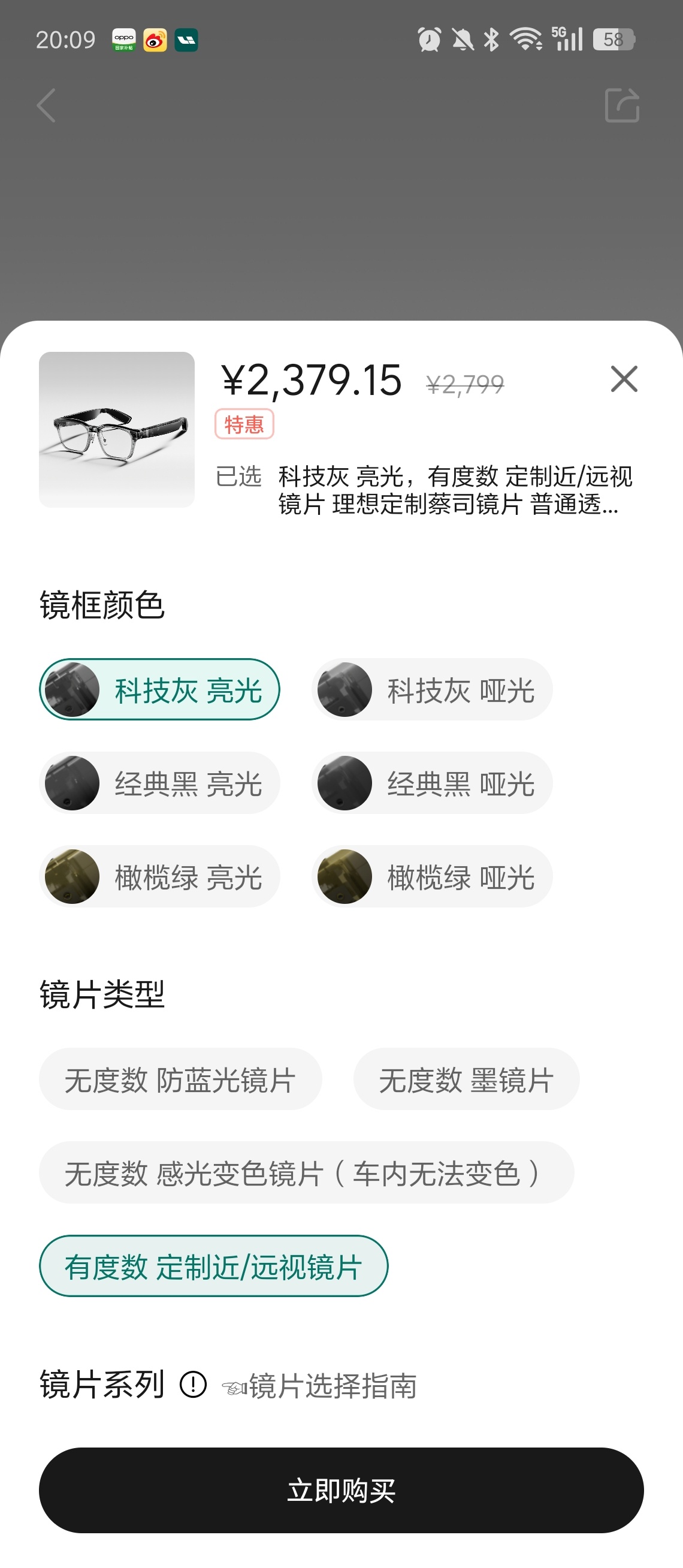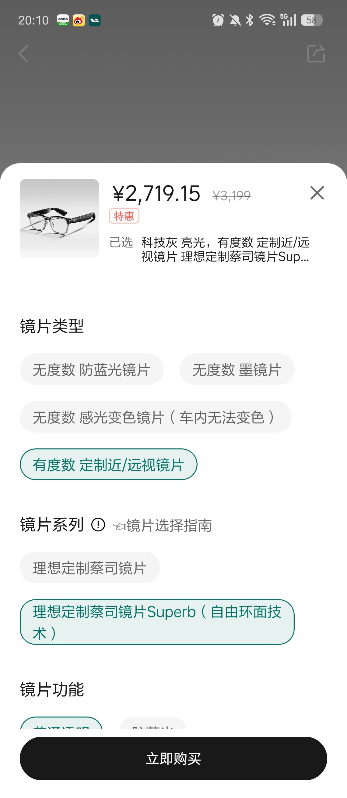理想ai眼镜livis 价格我都贴出来了,国补后1699.15~2719.15元。可以说完全低于我预期,毕竟全部配了蔡司的镜片,而且和理想汽车的交互,本身的颜值都很不错。蔡司定制Superb自由环面镜片,不是普通的非球面镜,是把镜片分成四等分,每个等分的度数进行优化(大概700个点),应该对应蔡司的泽锐。所以配镜的度数要很准确,如果拿不准,配蔡司的非球面也很好了。理想汽车 理想首款ai眼镜售价1699元起