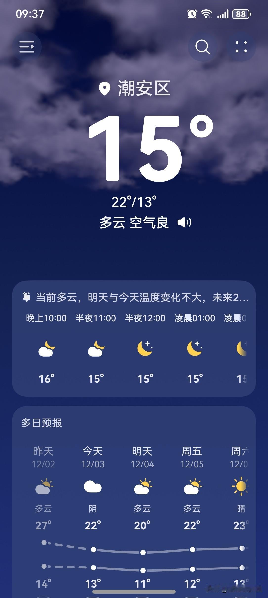 寒潮余威仍存南方多地寒冷上线!新一股冷空气影响广东! 南方多地今明持续降温,浙江北部等地降幅达8℃,南京、合肥最低气温或创下半年新低。北方今起回温,中东部大部气温将逐步回升。 受冷空气影响,12月3~4日广东中北部市县日平均气温下降4-6℃,其余市县气温下降3-4℃;从5日白天起,全省大部分市县气温缓慢回升。 今天(3日),潮州喜提一个阴天有分散小雨天气。气温13~22℃,此刻气温15℃,体感温度14℃。 今天早上气温下降明显,还有小雨,体感凉飕飕的。 中午时分气温虽然上升到℃,但持续阴天,没有阳光的日子,感觉特别冷啊! 傍晚时分,气温再度下降,体感更冷。 天气是越来越冷了!明天会更冷! 小伙伴们!注意做好防寒保暖措施,别让感冒病毒有机可乘!