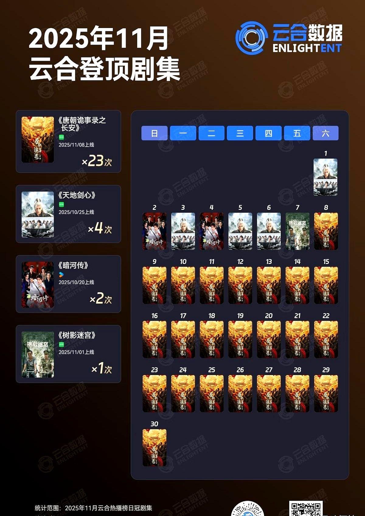 11月云合登顶剧王:《唐朝诡事录之长安》屠榜23天杀疯了! 2025年11月云合登顶剧集日历曝光📅《唐朝诡事录之长安》直接杀疯——11月30天里狂拿23次日冠,从8号上线后几乎锁死榜首! 这数据简直像一记重锤砸向同期作品。《天地剑心》《暗河传》《树影迷宫》三部剧加起来才勉强凑出7次日冠,连《唐诡3》的零头都够不着。观众用遥控器投票的结果赤裸裸摆在眼前:悬疑探案+盛唐美学的组合拳,又一次精准击中了市场命脉。 看看云合日历的走势图,除了月初几天的缓冲期,整个11月几乎被《唐诡3》染成单色。这种统治力让人想起去年《狂飙》的霸屏盛况——但这次更恐怖,上线第二天就冲顶,随后像钉子般焊死在榜首。观众追剧的疯狂程度,从社交平台热搜词条就能窥见端倪:唐诡3细节考据、苏无名台词封神等话题轮流刷屏,甚至带火了西安旅游的冬日预订量。 对比同期作品的表现,《天地剑心》武侠特效再精美,也难敌剧情节奏的拖沓;《暗河传》原著IP底蕴深厚,却输在改编节奏失衡。观众如今的口味早已进化,光靠流量明星或大制作噱头根本糊弄不了人。 行业内部流传着一组更震撼的数据:《唐诡3》单集平均播放时长达到48分钟,接近完播率90%。这意味着绝大多数观众不是划水围观,而是实打实被剧情钩住。制作团队在服化道上的考据功力再度封神——长安城108坊的街景复原度高达92%,连道具组复制的唐代茶器都被博物馆转发认证。 不过爆款背后也有隐忧。同期三部剧的集体哑火,暴露出影视行业过度依赖IP续集的痼疾。当市场被少数超级IP垄断,新鲜题材的生存空间正被挤压。别忘了去年《漫长的季节》靠原创剧本杀出重围的案例——内容为王永远比流量游戏更持久。 值得玩味的是,《唐诡3》收官后豆瓣评分稳定在8.5分,比前作还高出0.3分。这种续集不崩反升的案例,在国内剧集市场堪称稀有。制作方接受采访时透露,团队在剧本阶段就埋了40多处前后呼应的细节钩子,这种尊重观众智商的创作态度,或许才是真正的爆款密码。 各位读者你们怎么看?欢迎在评论区讨论。