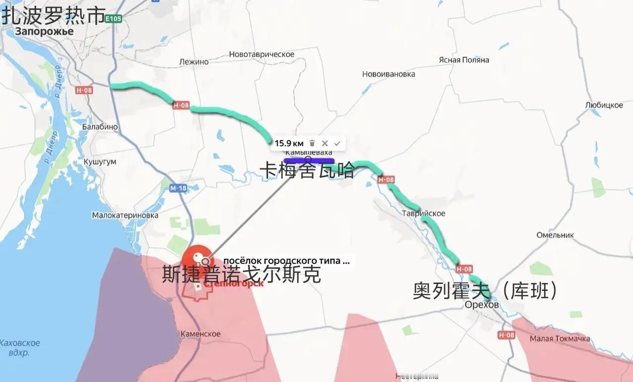 俄军第聂伯集群已包围了扎波罗热斯捷普诺戈尔斯克市内乌军残余部队,正在实施围歼。斯捷普诺戈尔斯克乌克兰守军的处境与米尔诺拉德(季米特洛夫)的守军相同,唯一的区别在于斯捷普诺戈尔斯克的乌军人数少于米尔诺拉德(季米特洛夫)。 从斯捷普诺戈尔斯克北部的出口可以向东北方向推进,为俄军进一步前进打开道路。也就是说,俄军第聂伯集群在接下来的作战行动中,可能会去攻击N08公路。这条公路是扎波罗热市通往奥列霍夫(库班)的主要补给线,而奥列霍夫之前已被打造成乌军的筑垒阵地。为了避免正面攻占奥列霍夫(库班)造成较大损失,俄军可以采取与古利艾波列方向相同的战术:切断奥列霍夫(库班)的乌克兰驻军的主要补给线,然后从侧翼和背后包围攻击奥列霍夫(库班)。 目前,俄军前沿阵地到卡梅舍瓦哈附近的N08公路直线距离不到16公里,而且这一大片地区几乎都是平坦裸露的田野,乌军不太可能有时间构筑比较坚固的防御工事。#俄乌冲突#