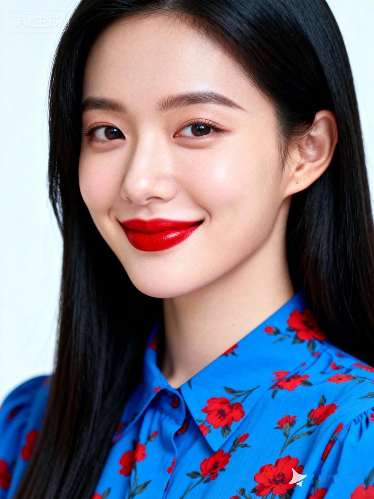 -青鬓裁云衬绛唇,蓝衫裹住一春红。 -唇间焰色眉间月,花入衣裾作晚霞。