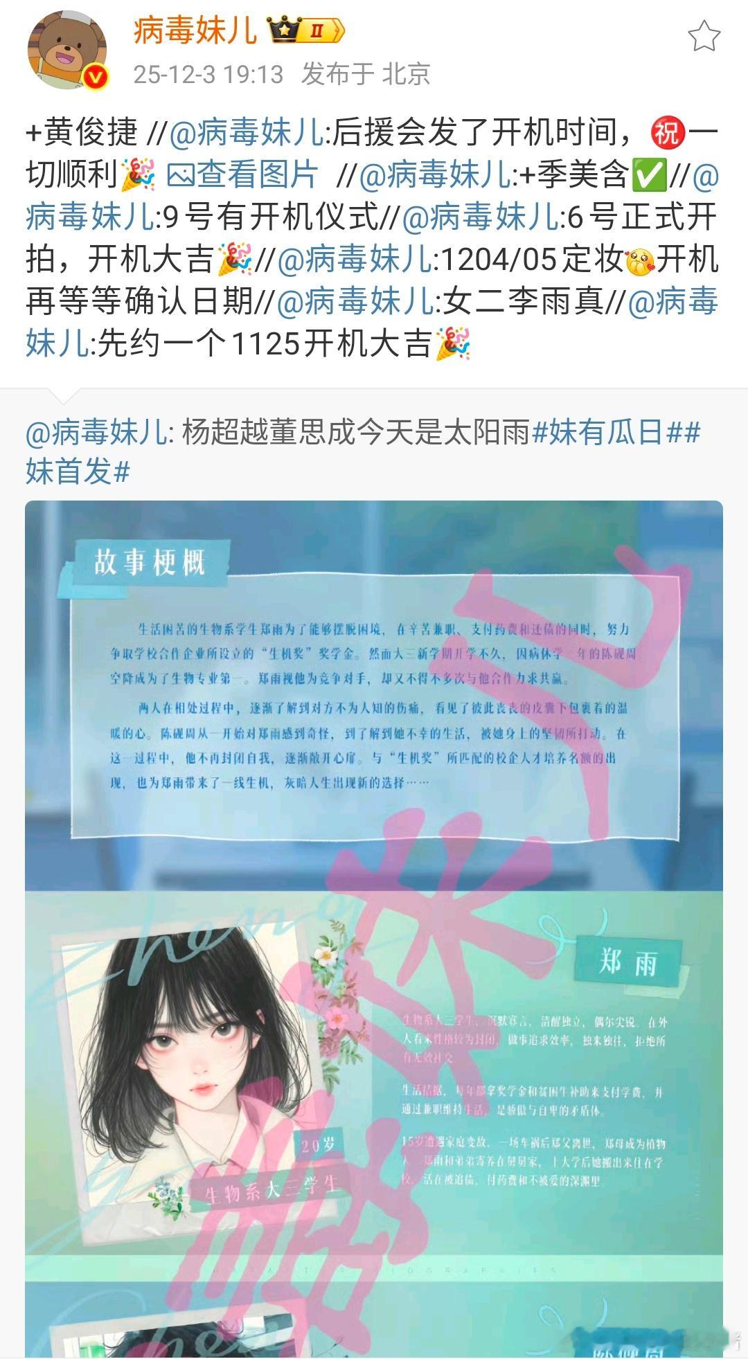 黄俊将进组今天是太阳雨,长剧现偶来了