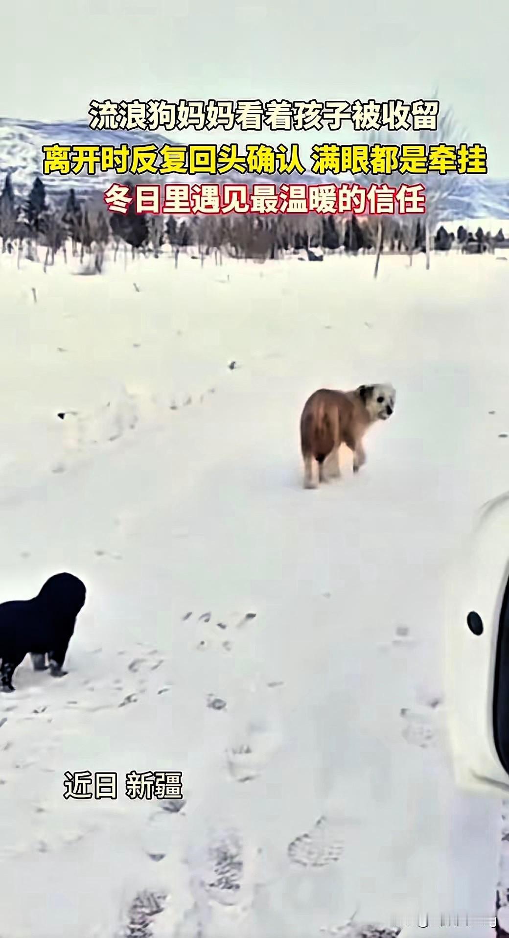 看哭了!新疆大雪天的这一幕,把“母爱与善良”焊死在人心上! 车主路边停车赏雪,两只流浪狗突然冲过来,大狗叼着小狗一个劲往他面前推,那急切的样子,像在拼命托付宝贝。 谁能懂狗妈的心酸?冰天雪地护不住孩子,只能放下不舍,选个心善人家“送养”,一步三回头的模样,把母爱刻进了骨子里。 更暖的是车主一家,没敷衍躲开,不仅抱走小狗,还特意回头找狗妈,把4只狗崽全收养,狗妈也被牧民好心收留。 这才是双向奔赴的温柔啊!动物的灵性藏在绝境中的信任里,人的善良贵在“帮人帮到底”的负责。你见过哪些动物与人类的暖心瞬间?评论区分享下~