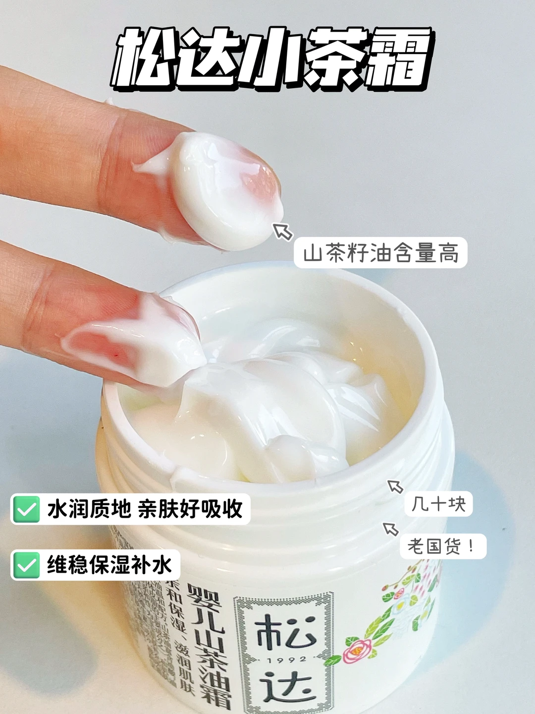 🔹日常护肤维稳,则可以用松达小茶霜。糯糯的酸奶质地,清爽水润好吸收,里面主要是天然山茶油,成分很简单,补水保湿、修护屏障、缓解泛红,都不在话下,而且价格也不贵,几十块💰一大瓶,用起来麻溜不心疼。