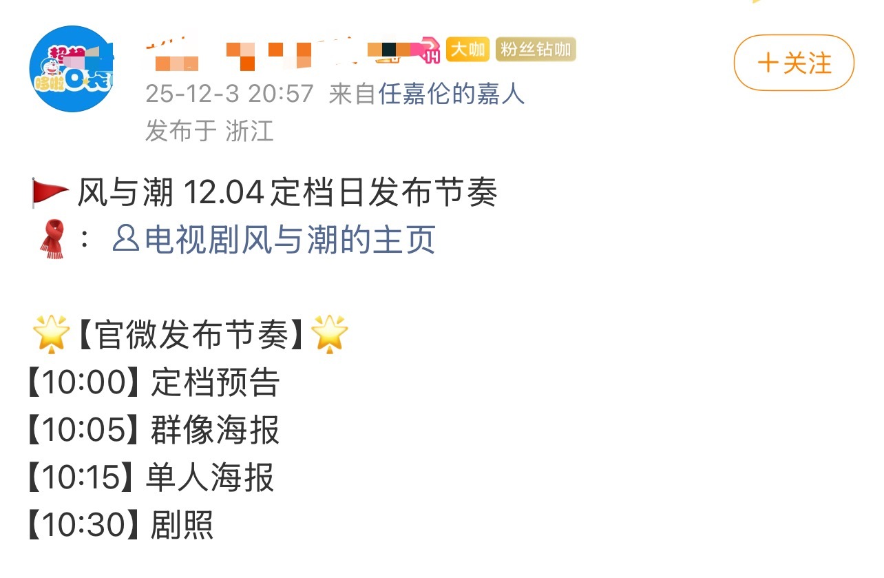 任嘉伦风与潮官宣定档预热啦虽然被央视抢跑了哈哈哈!