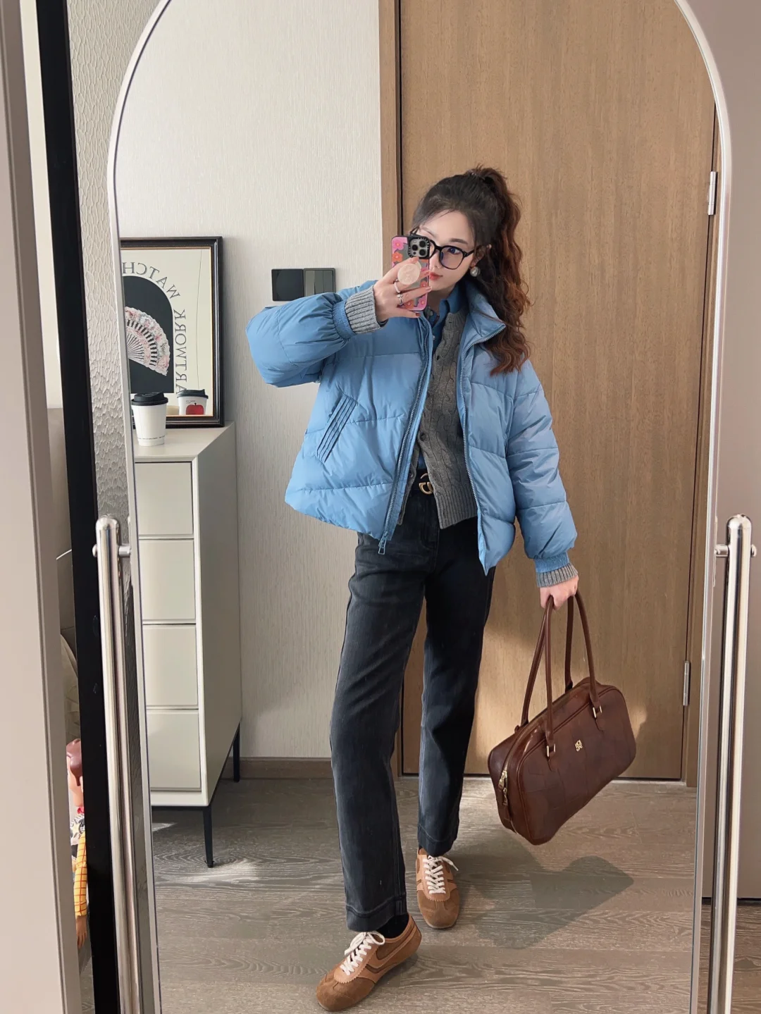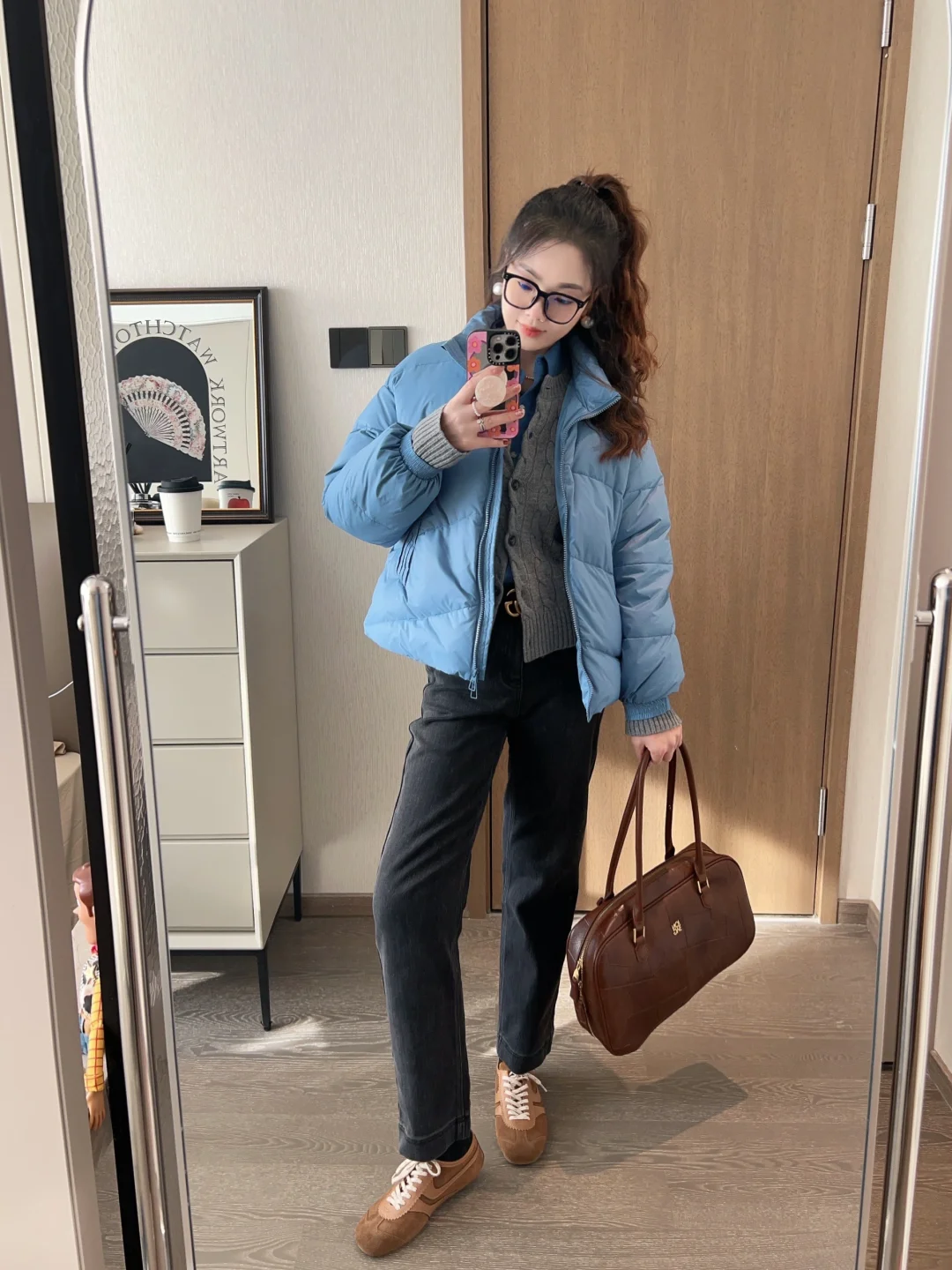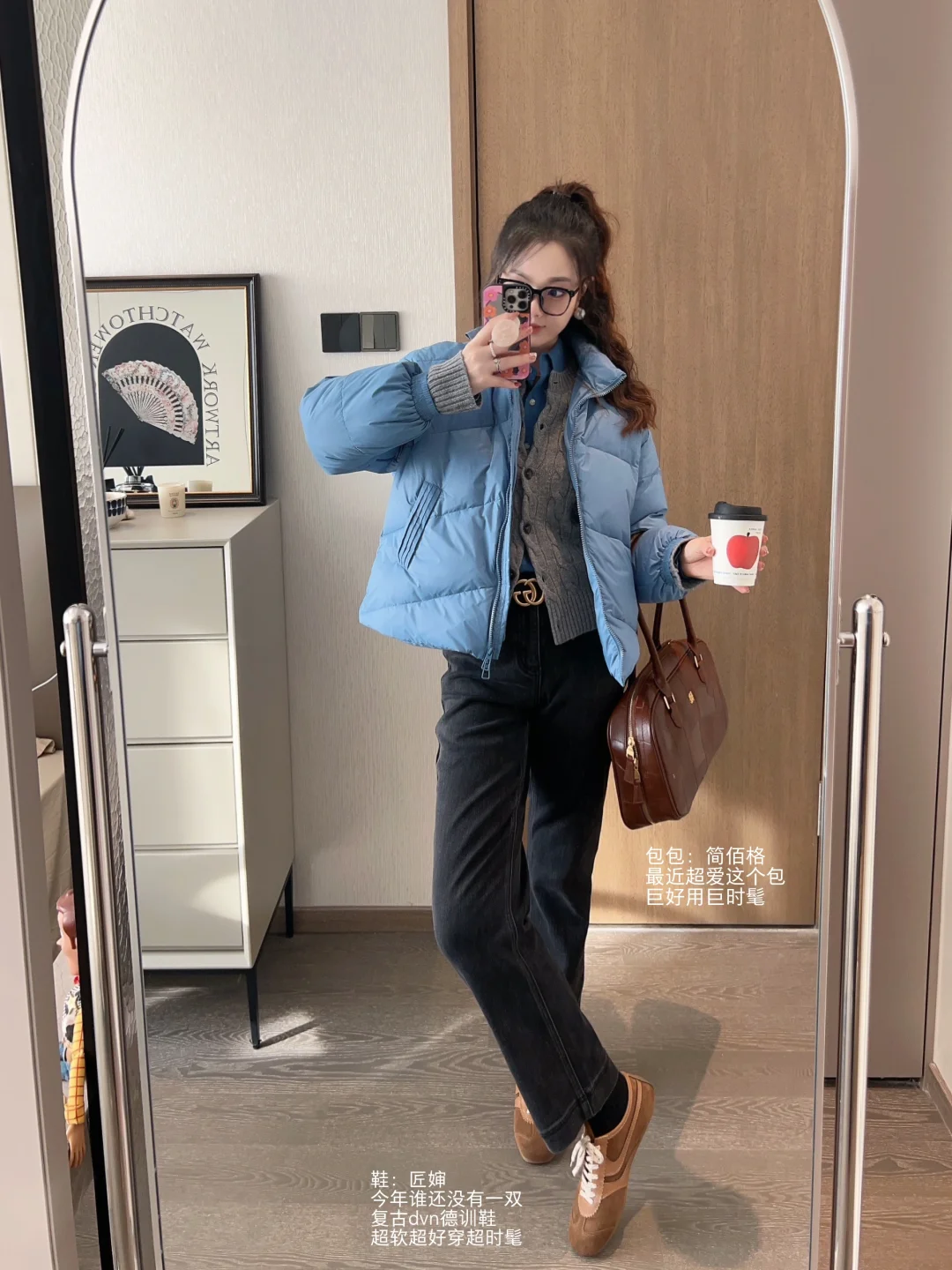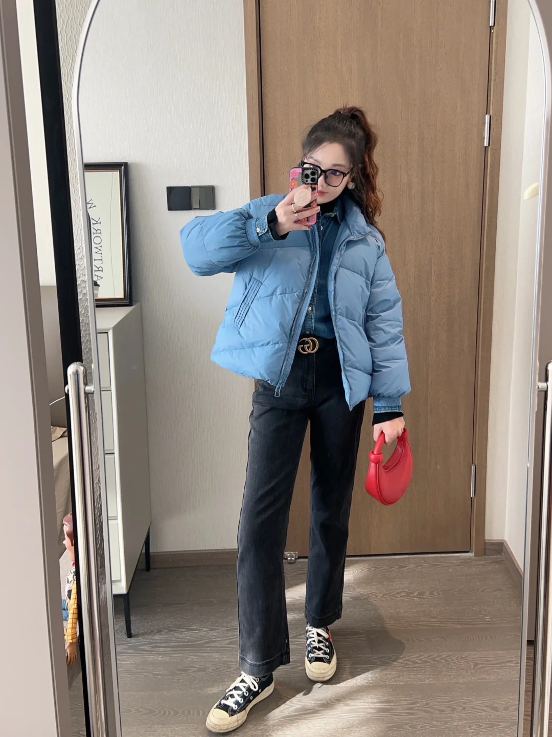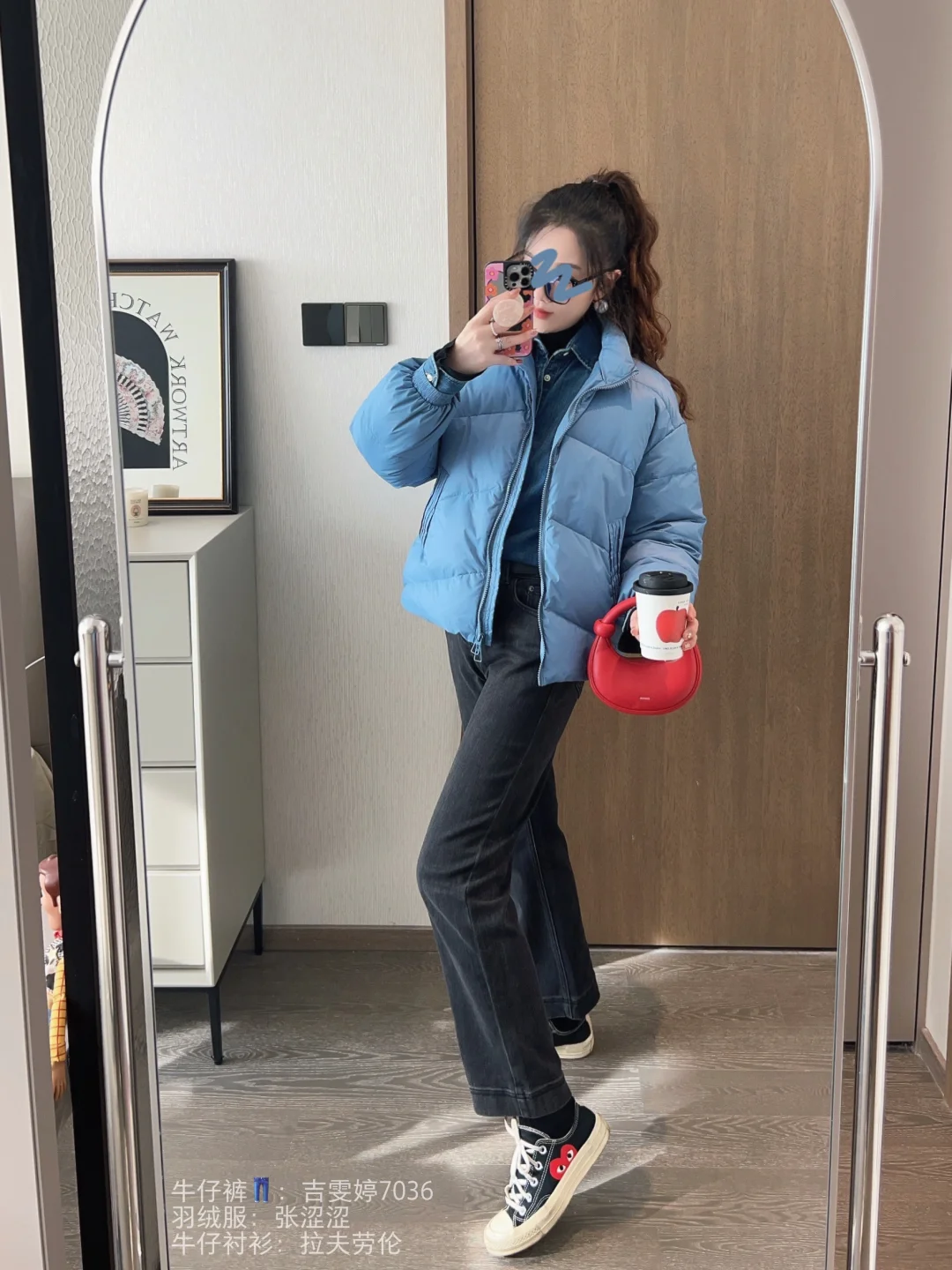 和一切不舒适的穿搭说no,冬天一键出门ootd岂不就是牛仔裤➕羽绒服嘛~ 打工人表示:简单休闲最舒适~亮色系好显白啊👀