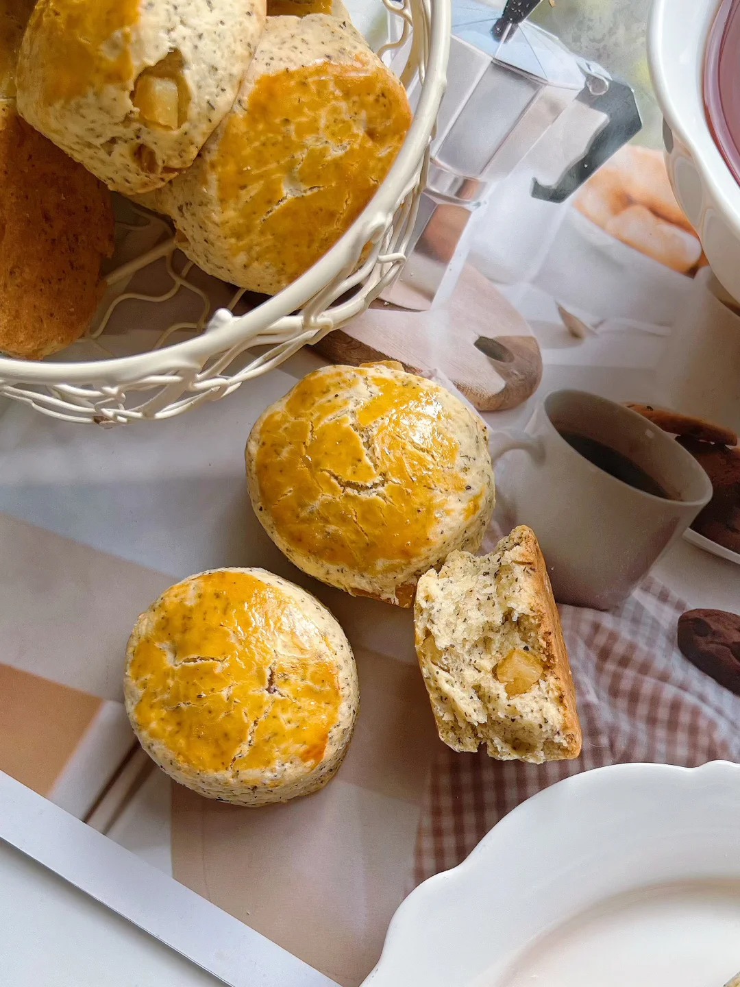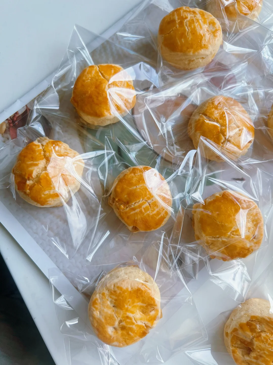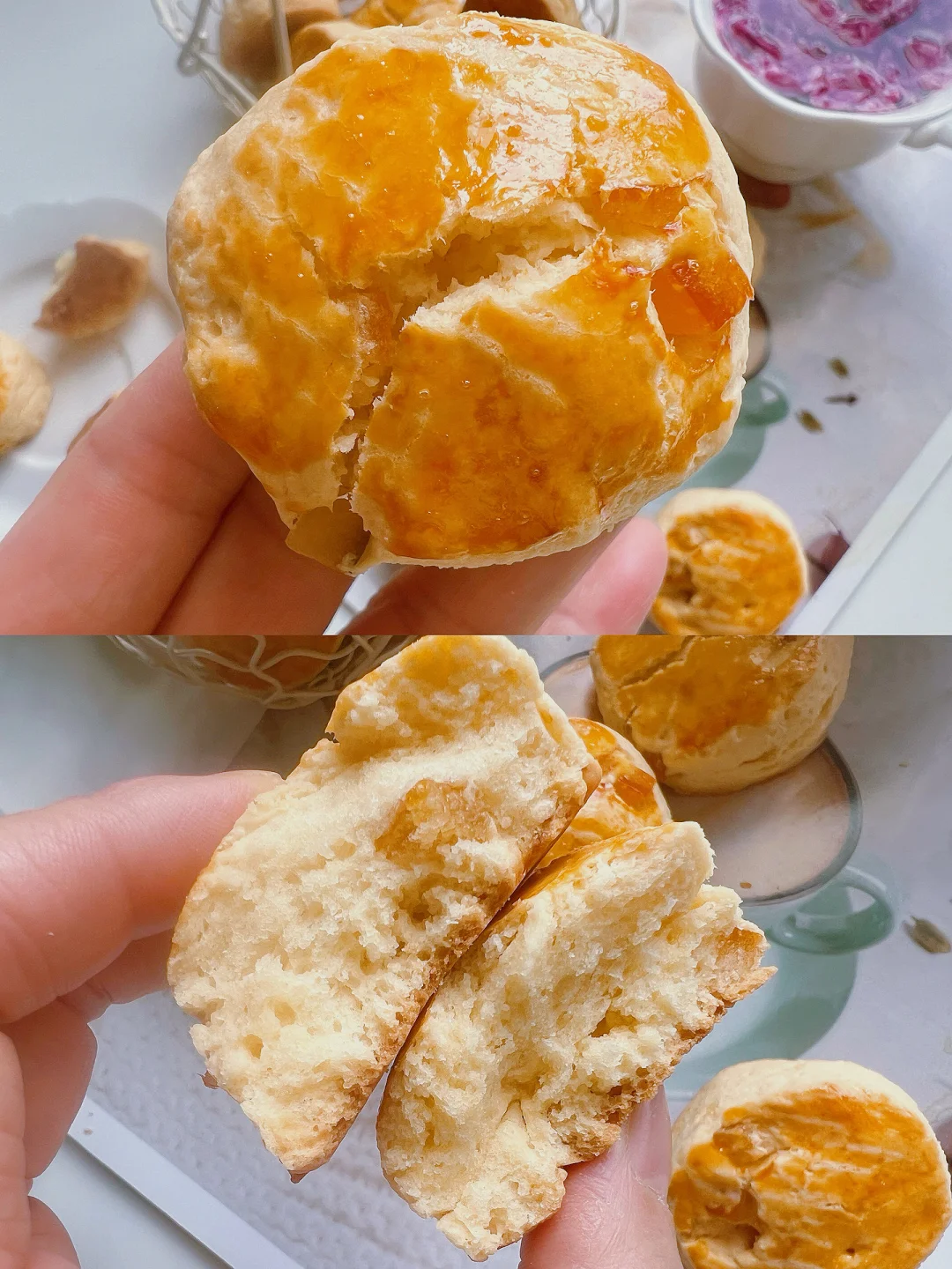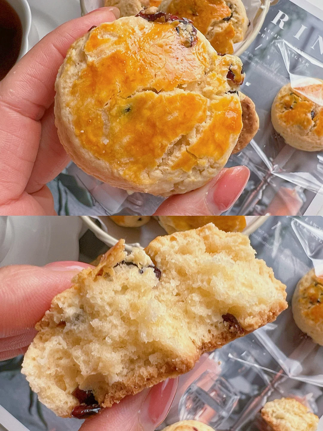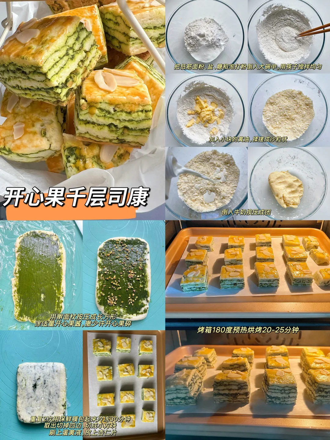 吃了甜食会开心 zui适合烘焙小白的莫过于司康啦 材料简单,只要有面粉、黄油、鲜奶油或牛奶、鸡蛋、泡打粉就可以做 随心添加一点你喜欢的葡萄干、蔓越莓、橙皮丁、奥利奥碎、巧克力等小料 可以变化出不同口味的司康 基本不会翻车[派对R][派对R][派对R] 一起来看看吧! 配方见图,详细文字操作步骤可以进主页🔍 🌈蔓越莓司康 🌈伯爵红茶橙皮丁司康 🌈橙皮丁司康 🌈开心果千层司康 ⚠️基本操作步骤: 1️⃣低筋面粉、糖、盐、泡打粉混合均匀 2️⃣加入冷藏黄油丁搓成沙粒状(也可以用料理机,不过手搓的感觉很治愈~~ 3️⃣加入牛奶或淡奶油、蛋液等湿性材料,翻拌成团,如果小料,可在成团前加入。 4️⃣整形后,冷藏静置1小时 (不冷藏也无妨) 整形方法: 可以上下铺油纸,擀面杖擀成长方形或圆形,直接用刮刀切分或用模具压成小块 5️⃣烤箱180度预热,烘烤20-25分钟左右,具体看上色 ⚠️Tips: 1️⃣黄油需要冷藏的,不要过度揉搓和翻拌,避免黄油融化和产生过多的面筋 如果有料理机是最好的,直接上料理机打成沙砾状,若没有,也可以用刮板切拌或者戴手套快速揉搓的方式(最喜欢的步骤,很治愈)