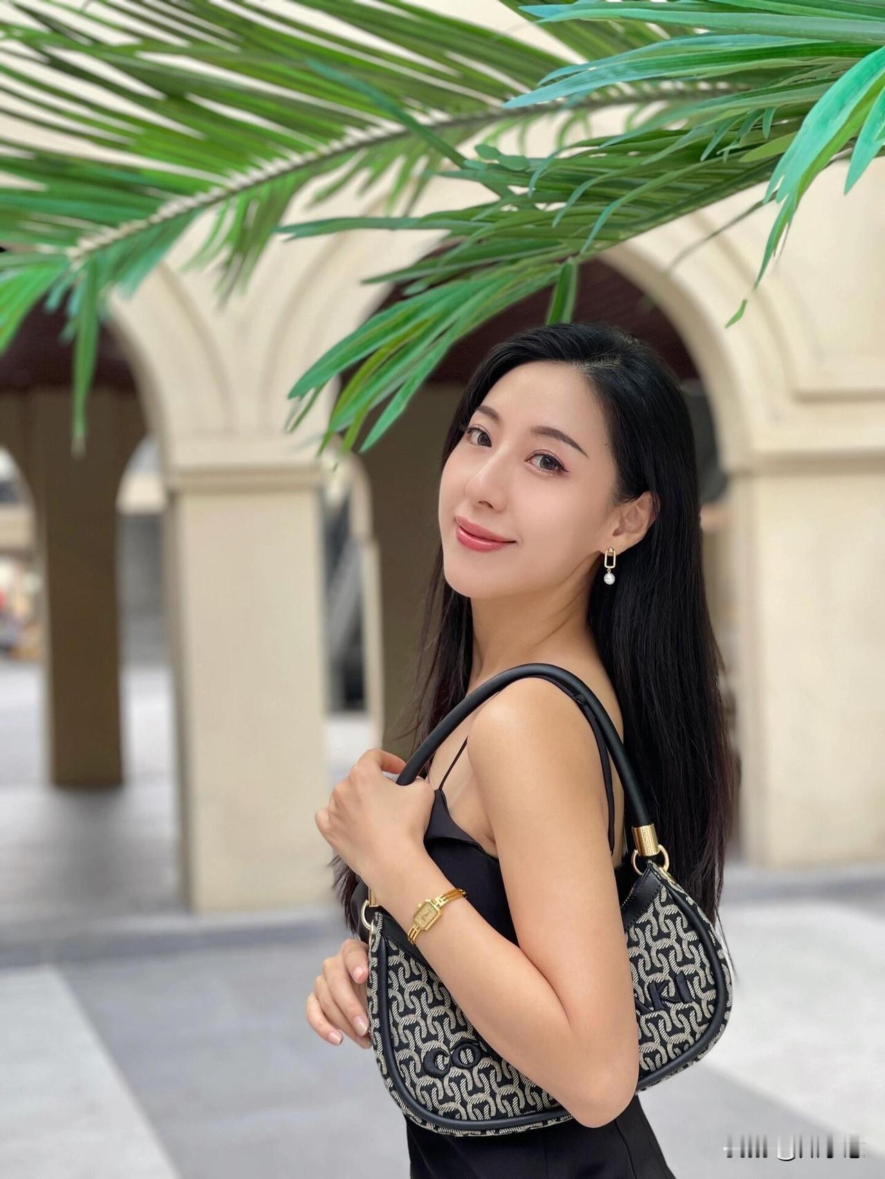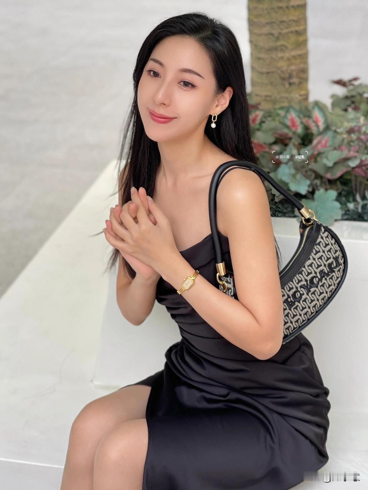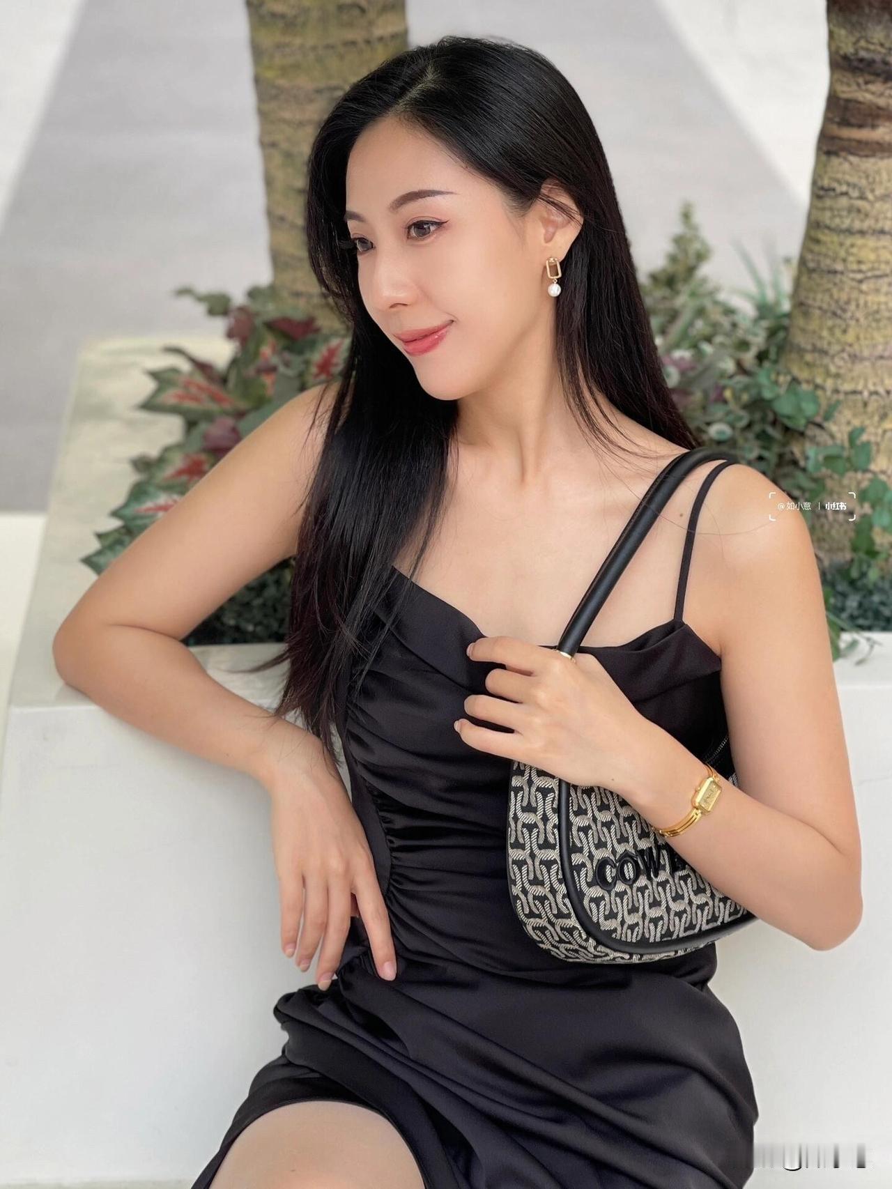 优雅黑裙,湖畔漫步,尽显都市女性魅力