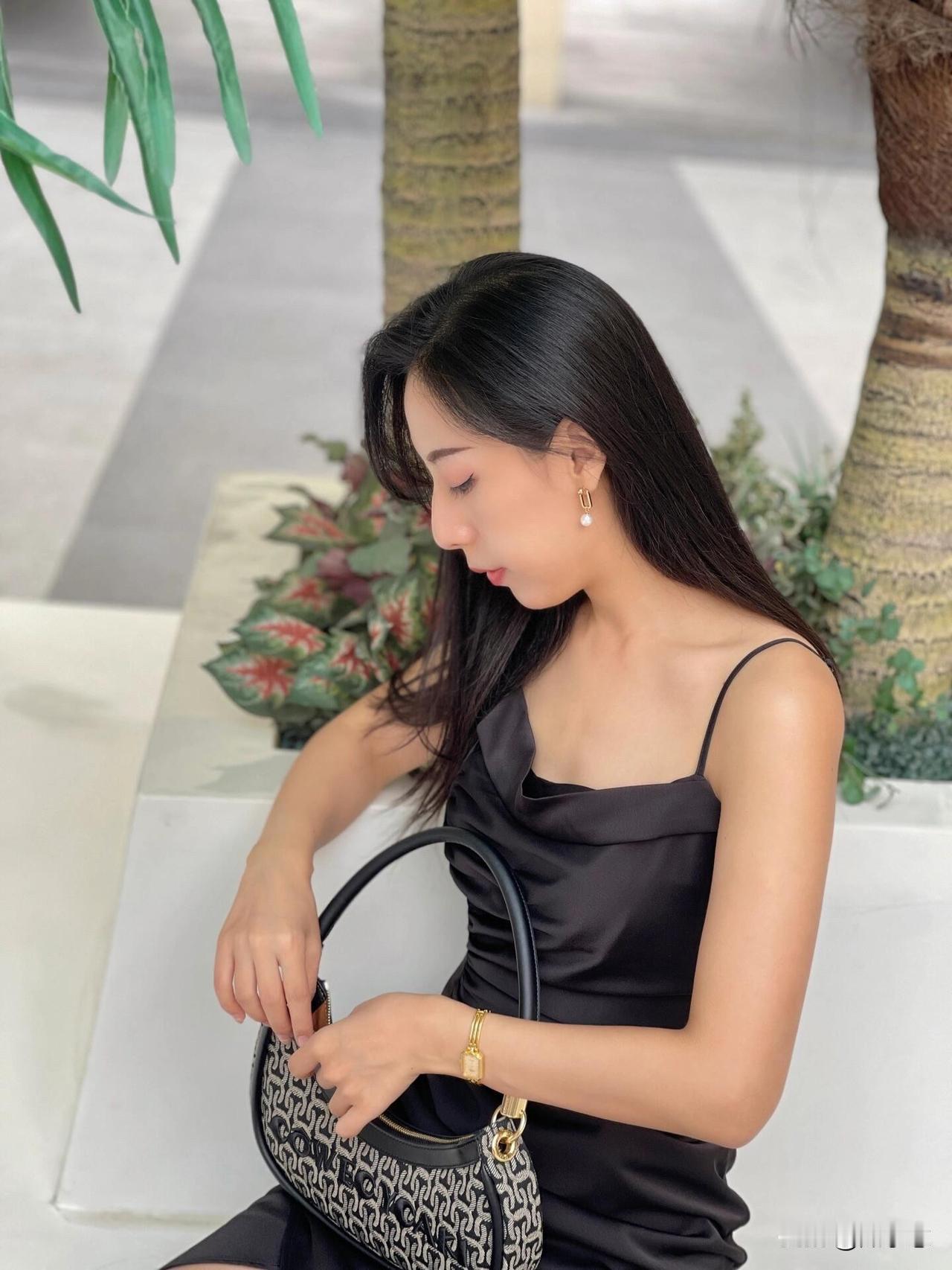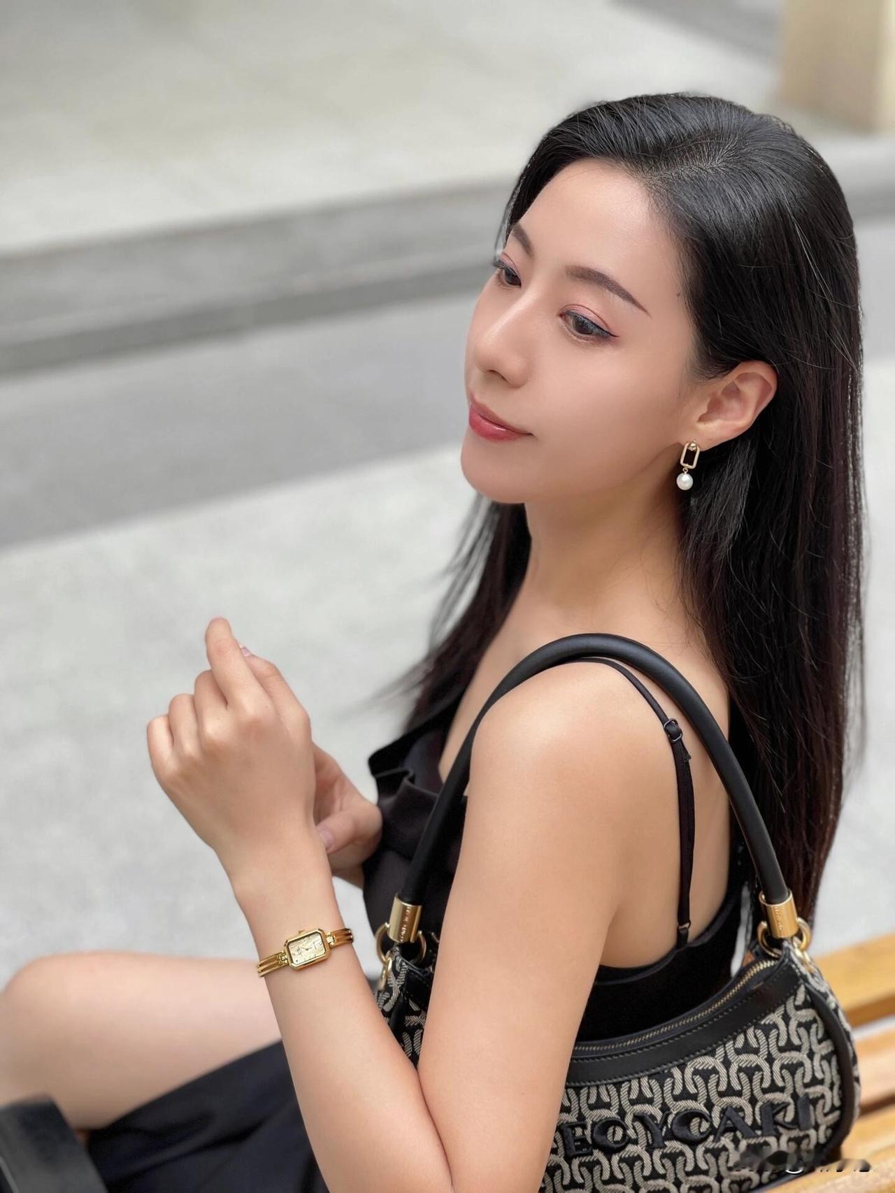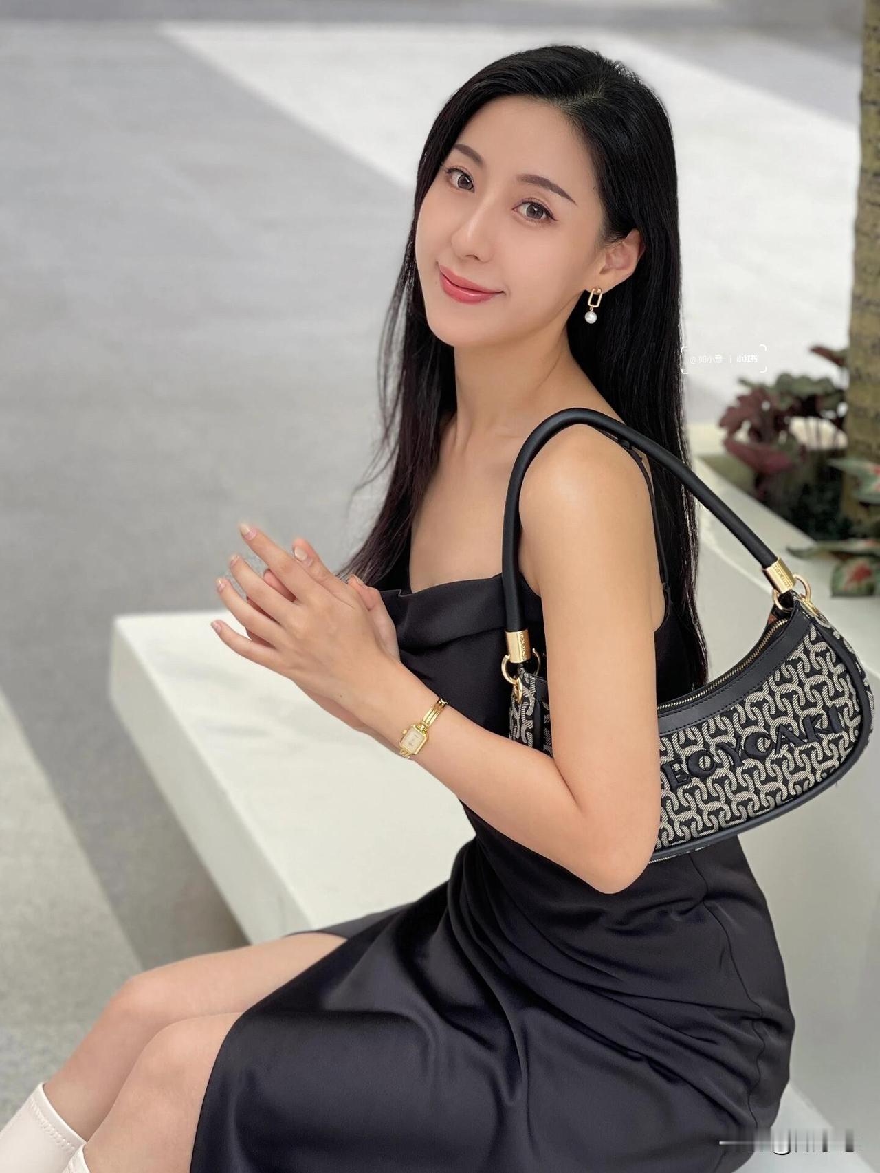 优雅黑裙,湖畔漫步,尽显都市女性魅力