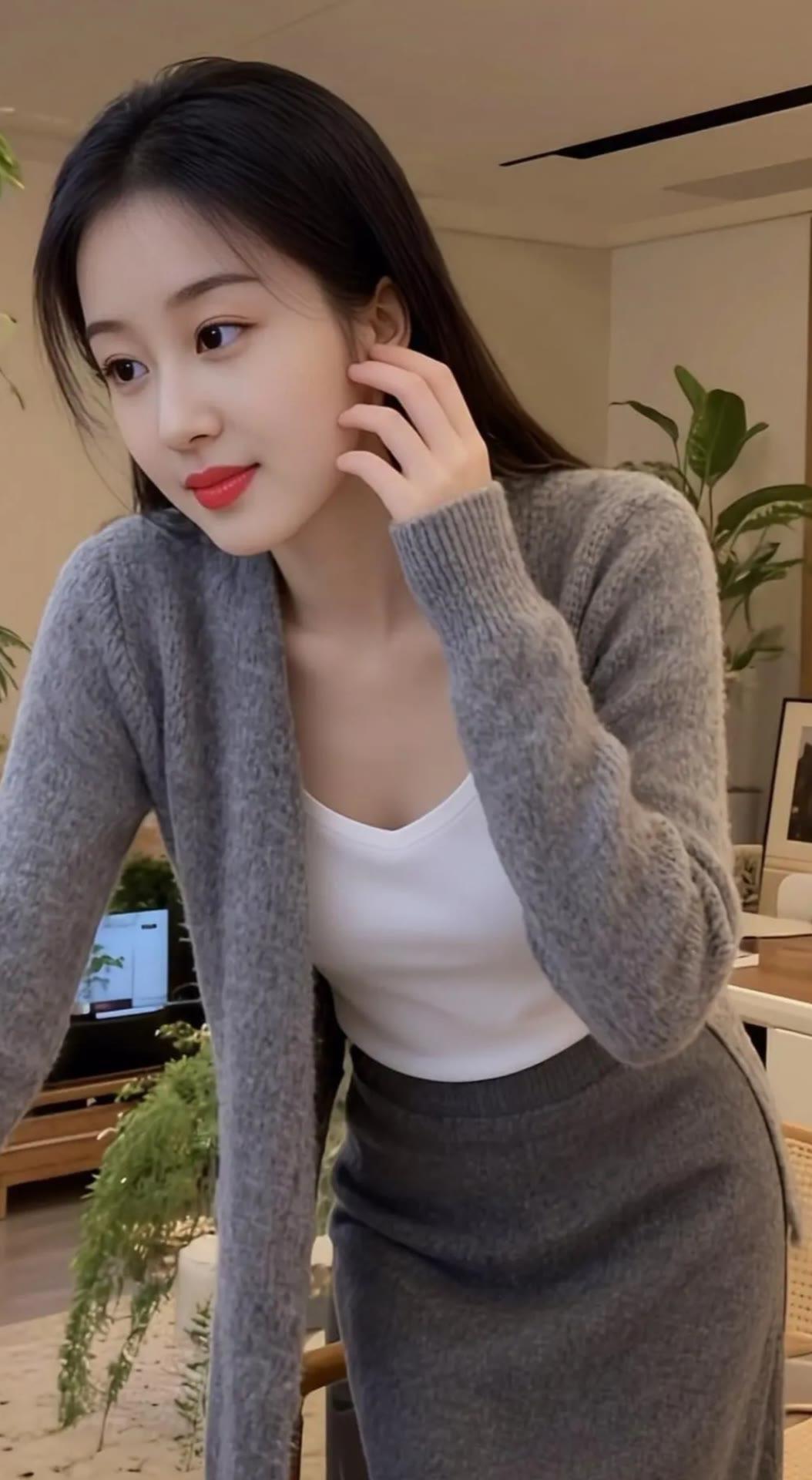 优雅气质穿搭,灰色毛衣搭配白色内搭,尽显温柔魅力!