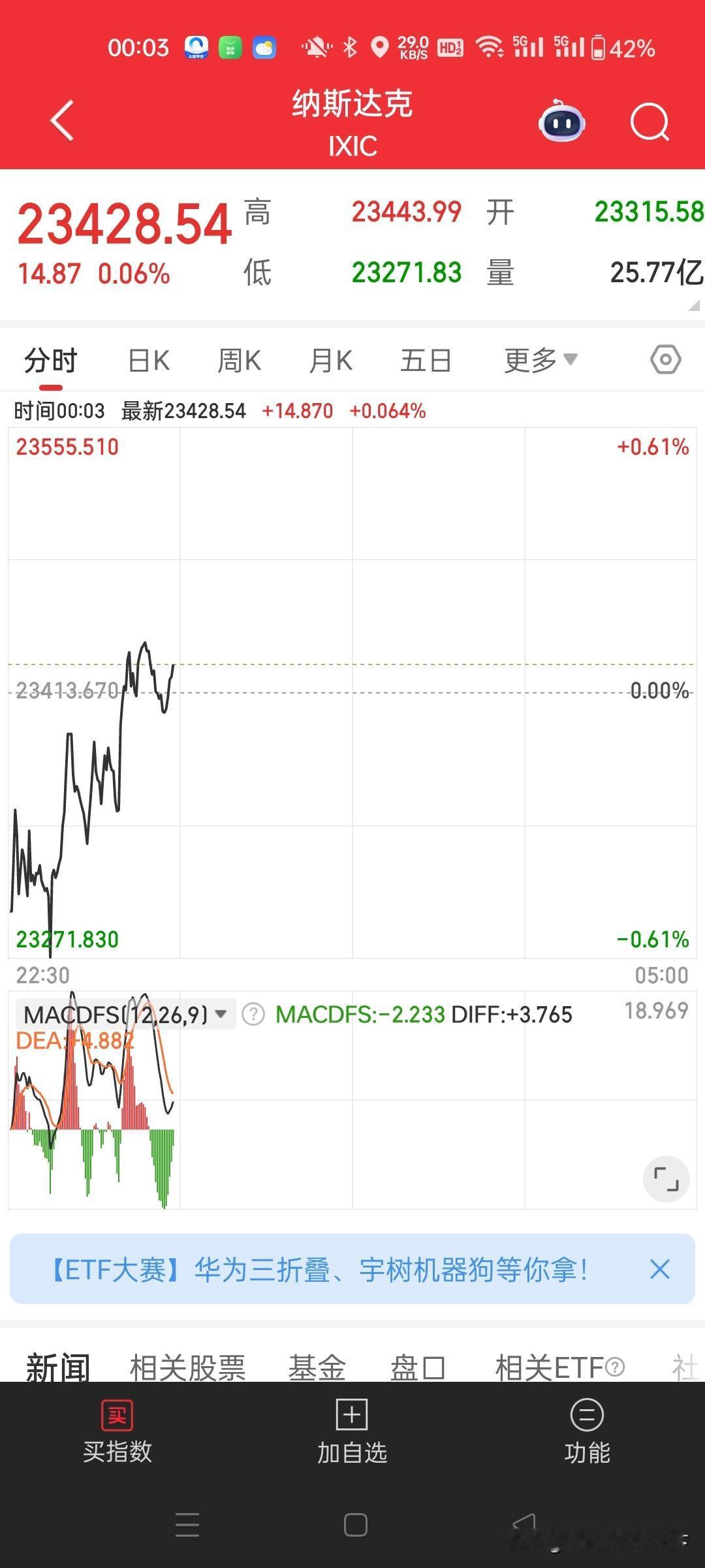 超有韧性,美股三大指数全部低开高走。 美股三大指数集体低开,道指跌0.06%,纳指跌0.44%,标普500指数跌0.25%。迈威尔科技涨超7%,收购Celestial AI押注“下一代光互联技术”。文远知行涨超2%,获ARK建仓,近两日买入逾66万股。 截止发稿,道指涨0.46%,纳指涨0.18%,标普500指数涨0.05%。