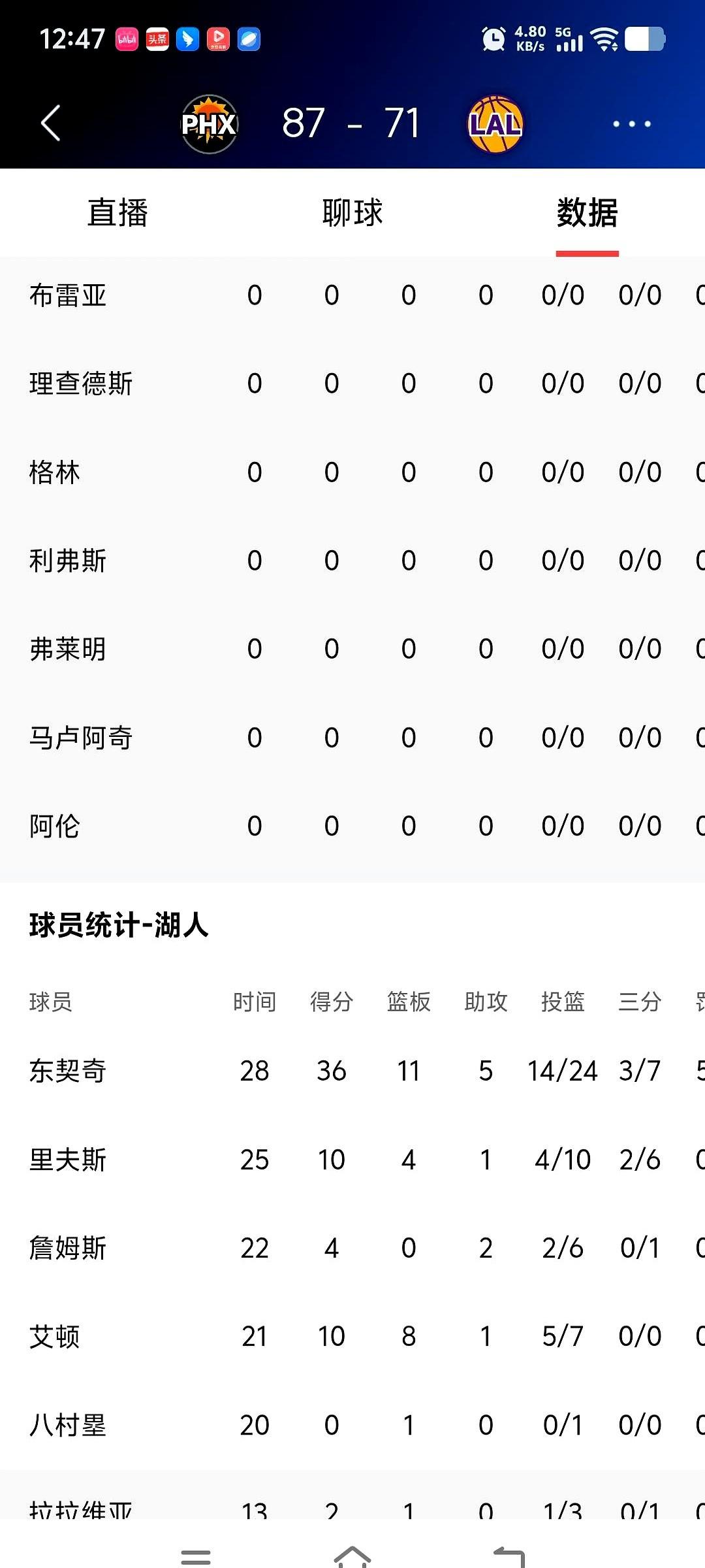 詹姆斯连续得分连续上双记录估计很快就要终结了。 此前四场他得分13、25、17、11分,12月2日第三节结束仅得4分,若第四节无刻意传球,记录大概率今日终结。 我觉得这种靠队友刻意喂球维持的记录没啥意义,他状态下滑肉眼可见,与其执着破纪录,不如多想想怎么带球队赢球,毕竟球迷更想看精彩比赛,不是刷数据的戏码。