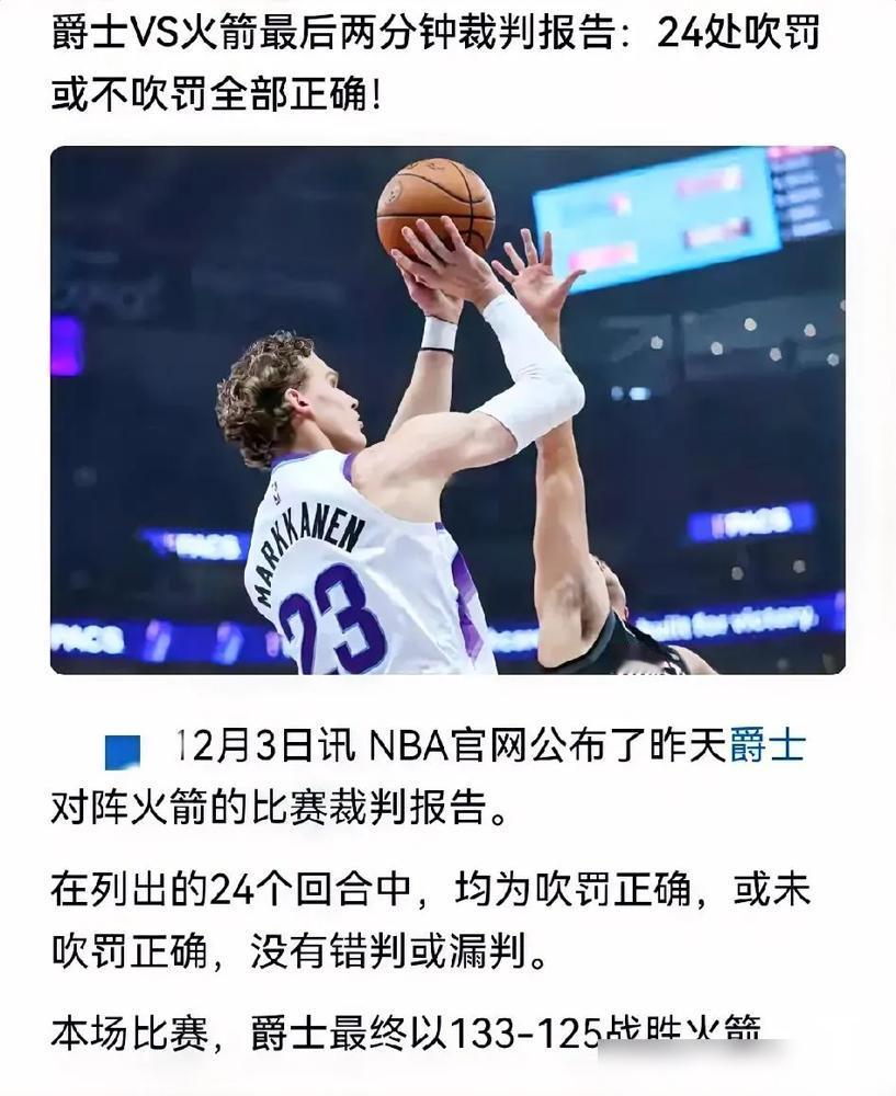 最大争议来了:火箭VS爵士裁判报告出炉。发了个神马玩意儿嘛!滑天下之大稽:都在一口锅里吃饭的,自己出的报告能说自己错了? 这报告看得人真是哭笑不得。自己查自己,能查出个啥真问题?这不就跟让考生自己批改试卷一个道理嘛。最后还不是一句“符合规则”就打发所有人了。规则成了万能挡箭牌,这才是最让人憋屈的地方。 回看火箭和爵士那场比赛,最后几分钟确实火药味十足。几个关键的吹罚,比如那个进攻犯规,还有一次出界球判罚,直接改变了场上的势头。球迷的眼睛是雪亮的,慢镜头回放清清楚楚,硬是能给出个“无误”的结论。这不是把大家当傻子哄吗? NBA的裁判报告制度,本来是为了增加透明度,平息争议。可现在倒好,反而成了争议的源头。每次报告出来,几乎都是“判罚正确”或者“轻微误判但不影响比赛”。时间长了,谁还信这一套?公信力就是这样一点点消耗没的。 说到底,职业体育的核心是公平竞赛。球迷花钱买票、熬夜看球,为的就是欣赏一场纯粹、干净的比赛。如果连最基本的公平都让人心生疑虑,这项运动的魅力还剩下多少?裁判也是人,难免会犯错。大家要的不是一个永不犯错的“神”,而是一个敢于承认错误、并努力改进的公正体系。 信任这东西,建立起来难,毁掉却很容易。一次次的“无误”报告,就像是在球迷信任的堤坝上凿开一个个小孔。短期看好像没事,长期下去,崩塌是迟早的事。希望联盟能真正重视起来,别让球迷的热情,最终败给一套僵化的自证流程。 比赛的魅力在于它的不可预知性,但这份未知应该来自球员的发挥,而不是裁判的哨子。