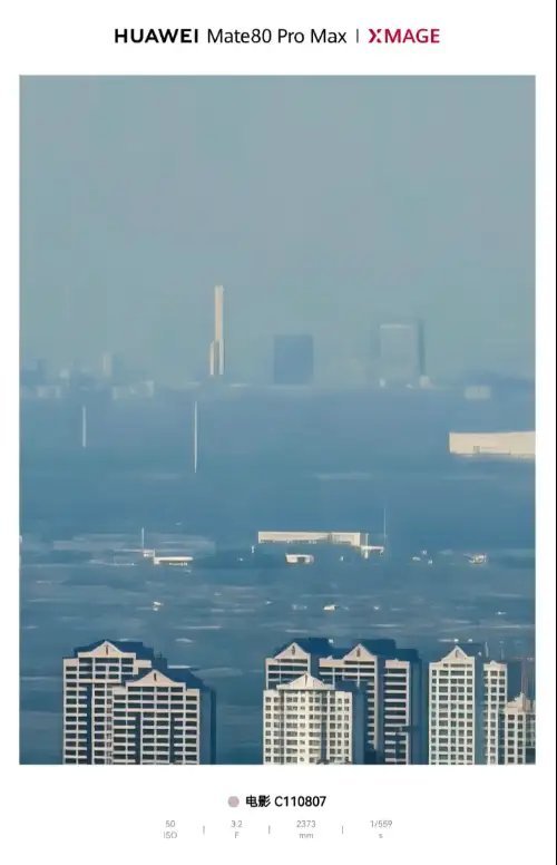 【华为Mate80 Pro Max百公里外拍到中国尊 这变焦有点强】数码博主使用华为Mate 80 Pro Max在天津市区成功捕捉到105公里外的北京地标建筑——中国尊。中国尊作为北京CBD高528米的标志性建筑,常被摄影爱好者从不同地点取景。从天津市区拍摄该建筑,直线距离约100公里,理论上需要极长焦镜头与极佳能见度条件,而且对拍摄设备也有着较高的硬件要求。华为Mate 80 Pro Max于2025年11月发布,影像系统是其最大亮点之一。该机搭载业界罕见的潜望式双长焦镜头组合,两颗均为5000万像素,分别支持4倍光学变焦和6.2倍光学变焦。通过双长焦协同工作,可实现高达12.4倍的“光学品质变焦”,最高还支持100倍数字变焦,在保证画质的前提下大幅拓展远摄边界。两颗长焦镜头均采用RYYB感光阵列并配备OIS光学防抖,有效抑制手持抖动。除长焦外,华为Mate 80 Pro Max的主摄为5000万像素,采用1/1.28英寸大底传感器,支持F1.4至F4.0十档物理可变光圈,动态范围高达17.5EV;辅以4000万像素超广角及第二代红枫原色摄像头,构成五摄影像系统,全面提升色彩还原准确性与暗光表现。
