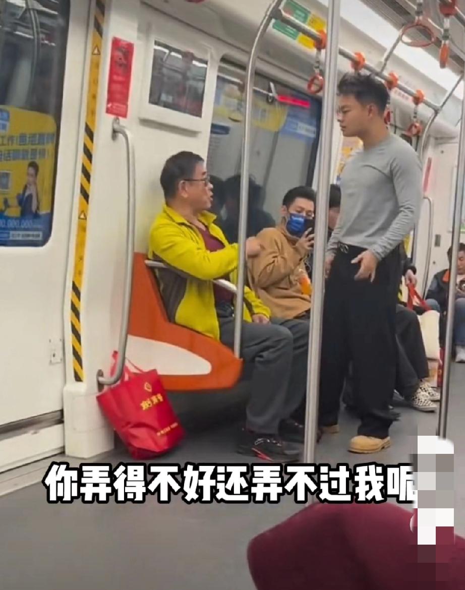 地铁上的一幕:坐着的这位大哥和站着的年轻男子发生争执,大哥说了这么一句“你弄的不好还弄不过我呢”,年轻男子立马撸起了自己的上衣,秀出了自己的八块腹肌,可即便这样,大爷也是毫无惧色,对年轻男子说道“哎呦,什么东西啊,真是的”…… 小登碰上老登,老登可不会惯着你![我想静静][我想静静][我想静静]