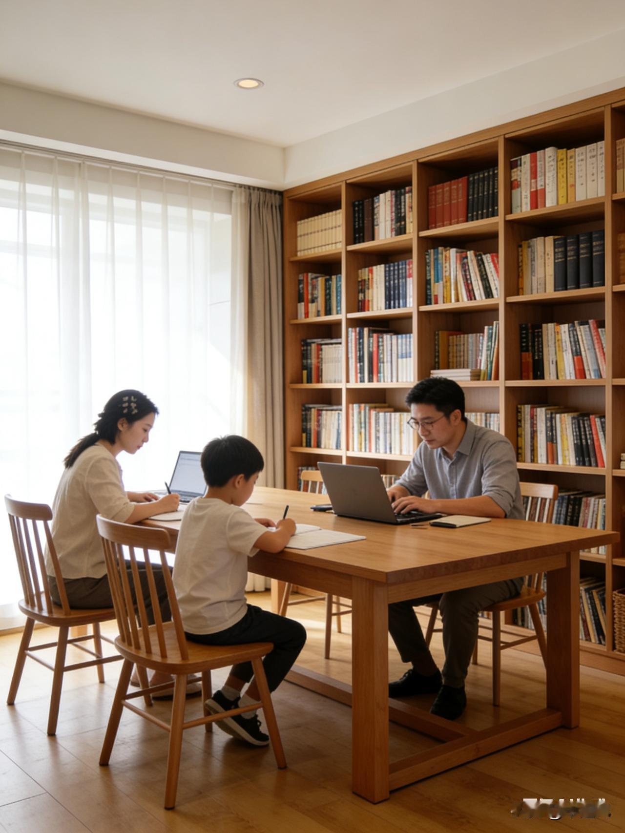 [微风][彩虹]买房必改书房!从北京二环到老家三居室,我们家的“读书角”越改越踏实 刷到天津博士满屋藏书的新闻,我立马有了共鸣——我们家这辈子买房装修,就认一个理:必须留间书房,哪怕“挤掉”别的房间。 在北京二环里的广安门买第一套房时,面积小得可怜,连正经书房都挤不出来。那时候我就跟三元先生念叨:“以后再买房,一定得给我弄个大书房,越大越好,其他的我都无所谓。” 心里就盼着,啥时候能有个宽敞地方,摆上书架和大书桌,安安静静待着。 后来换了丰台160平米的大房子,客厅就有二三十个平米,餐厅也宽敞,足足10多平米。我第一件事就是把主卧的卫生间改成了书房,还在餐厅摆了张一米八二的大桌子,我、小儿子还有三元先生,能同时在上面办公、写作业。 每个孩子都有自己的房间,家里的书柜也格外大,不管什么书都能藏进去,想起了就翻一翻。也正是在这个书房里,开启了老二的课外读书生涯。他还在上幼儿园时,就从书里知道了“鲁迅的骨头是最硬的”,慢慢养成了爱读课外书的习惯。后来发现,他的理解能力、穿透力还有自学能力,都比同龄人强不少。我自己也爱在这儿炒股,安静不受打扰,做事效率都高。 再后来装第三套房,老大已经去美国了,多出来一间卧室,我没犹豫,又改成了书房。 2023年回老家装修三居室,我还是把其中一间卧室改成了书房。想着这大概就是我养老看书的地方了,以后想炒股、想翻书,都能在这儿安安心心待着。 有人说,把卫生间、卧室改成书房不值当,但我觉得特别值。 书房这地方,不光是放书的,更是家里的“第二空间”。心烦的时候进去坐会儿,翻两页书,气就顺了;想静下心做点事,关上门就没人打扰。日子过久了才明白,一个能让人安心读书、沉淀自己的角落,对一个家来说有多重要。 博士满屋藏书让人羡慕,可对普通人来说,书房不用大,不用豪华,只要能满足一家人对读书、对安静空间的追求,就够了。这辈子为书房“让路”,我乐意,也始终认同这份对生活的小追求。