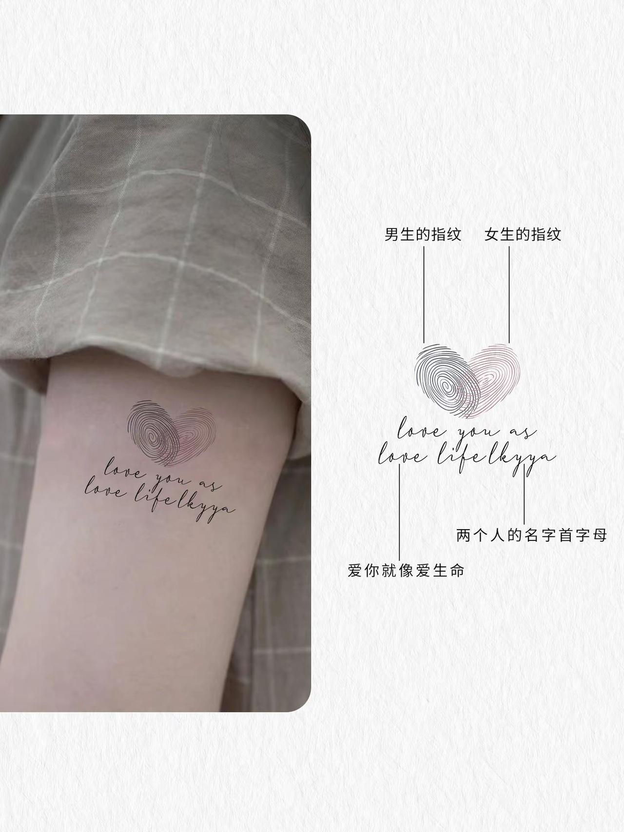 我们俩的指纹加英文和名字首字母设计。纹身 纹身设计 情感 tattoo