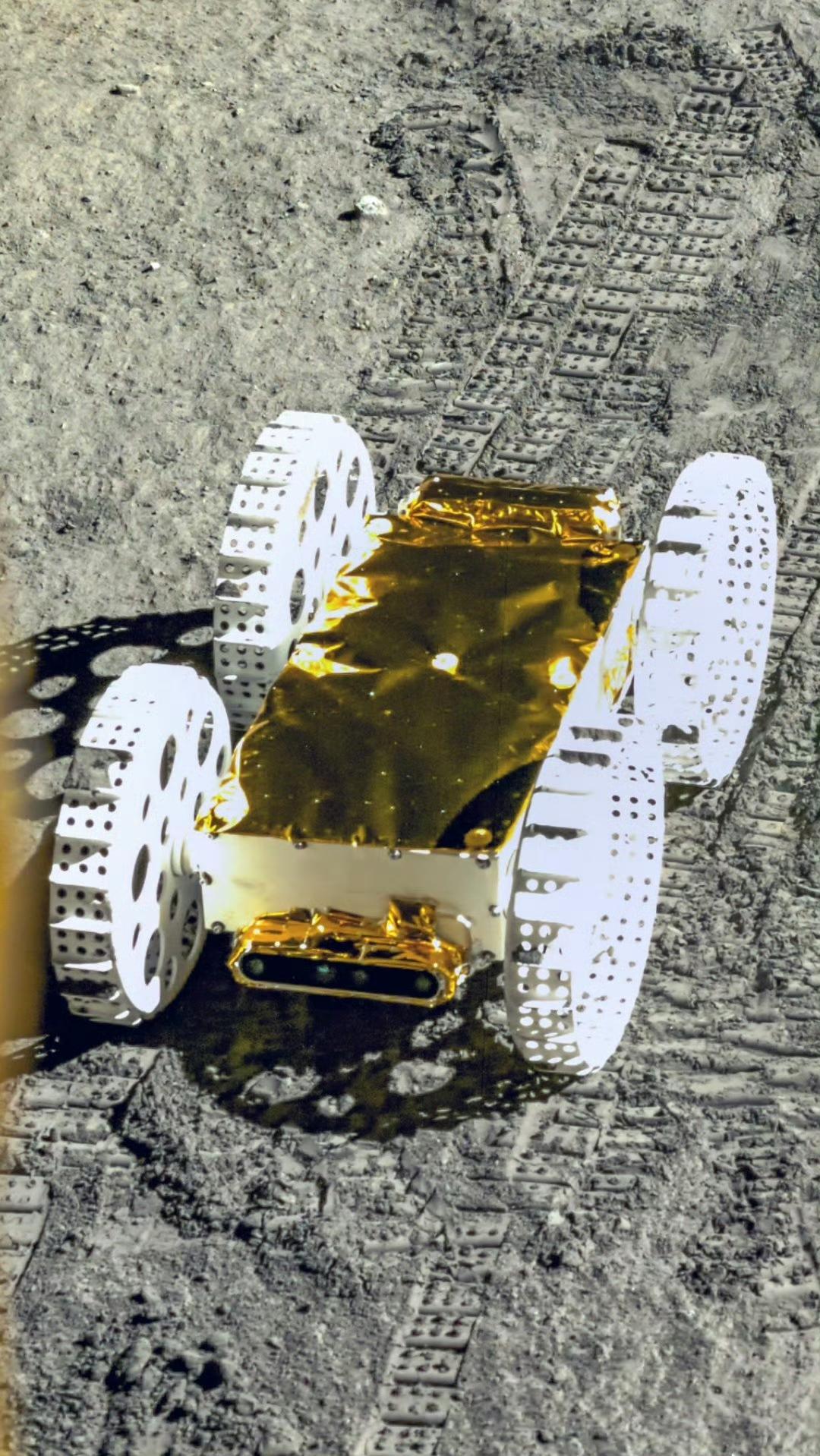 嫦娥六号任务”金蟾”月球小车! 发射前状态和落到月面后的状态,原计划是向下翻 90°掉到月面上,这样太阳电池片可以充分的吸收到太阳光,结果最后翻了个 270°,图3可以看到金蟾的太阳电池片。 这是一次非常有趣的实验,其实这种小型车在月球上并不占据太多的有效载荷,等下一代车型可以考虑,在底部和顶部都安装电池板。 或者也可以考虑一下怎么把小月球车更好的翻转,毕竟这个操作的难度都不是很大。