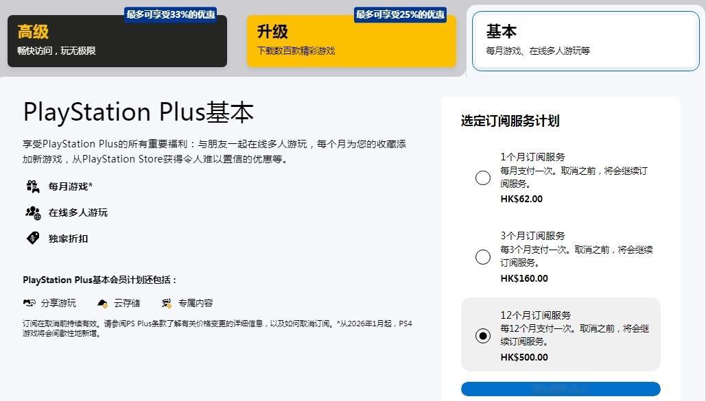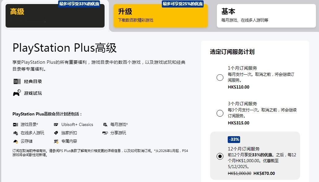 【PS PLUS会员优惠购买即将到期,错过等一年】索尼PS+会员黑五期间即将于明日到期,想要买会籍的玩家不要错过了。玩家在促销期间购买12个月会员,可享受低至67折的优惠。其中,新加入一档会员500港币无折扣,二档会员原价为835港币,75折后为626.75港币,三档会员原价为1000港币,67折后为670港币,12月5日结束。此次活动部分折扣因人而异,可登陆账号查看。