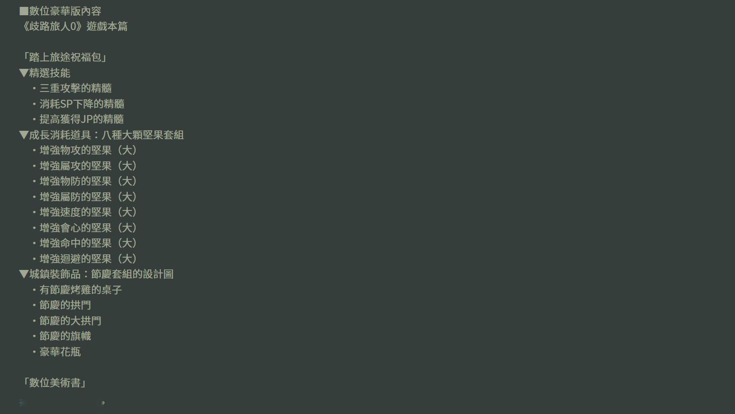 【《歧路旅人0》已在Switch/Switch 2等平台解锁】备受期待的系列新作《歧路旅人0》现已登陆Switch和Switch 2,其中,标准版售价为399港币,豪华版售价为479港币,单独购买的豪华版升级包为120港币。另外,《歧路旅人0》在PS、Xbox平台也已解锁,Steam版则要等到12月5日凌晨。本作以奥鲁斯特拉大陆的过去为舞台,描绘了一场由神之戒指引发的复仇与复兴之旅。系列中的经典特色也依然存在,例如融合点阵图和3DCG的画面表现手法“HD-2D”、可以让玩家享受个性化角色扮演的“地图指令”,以及能依靠玩家实力逆转战局的“破防&增幅”等等。此外,还有让你自身成为主角的“角色创建”,以及重建故乡的“建造城镇”等系列首度登场的新系统。