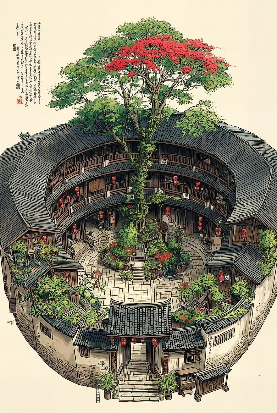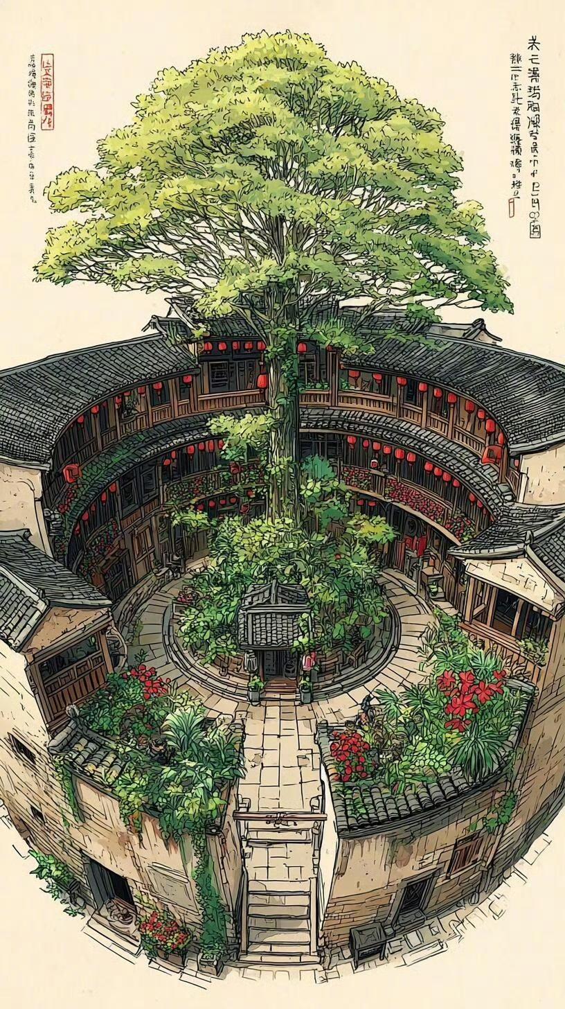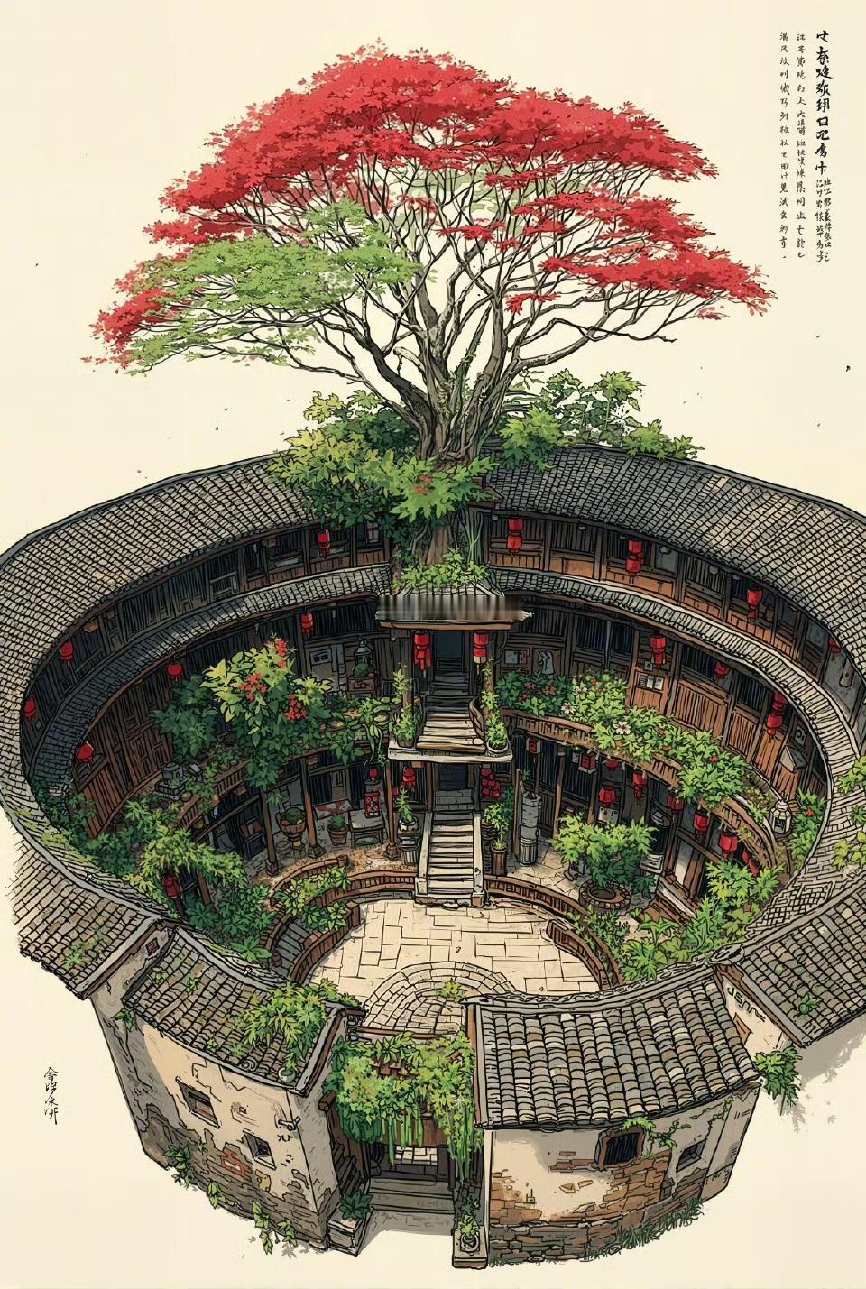 一楼一树一苍穹,半墙半瓦半旧梦。