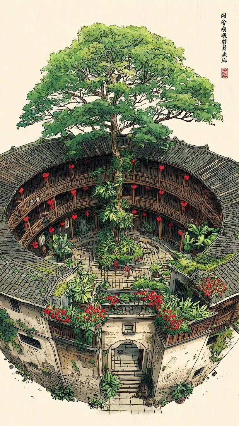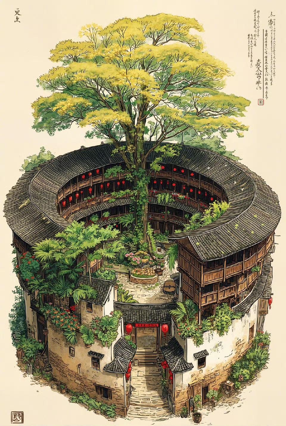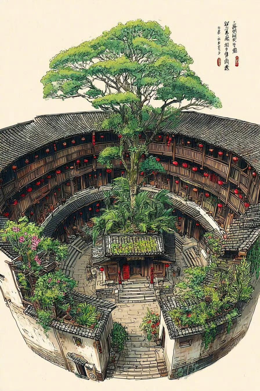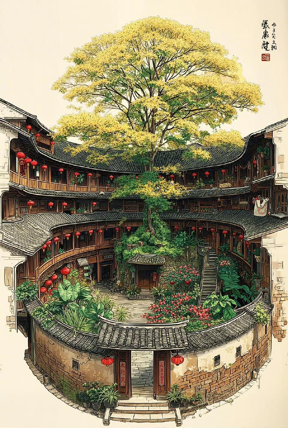 一楼一树一苍穹,半墙半瓦半旧梦。