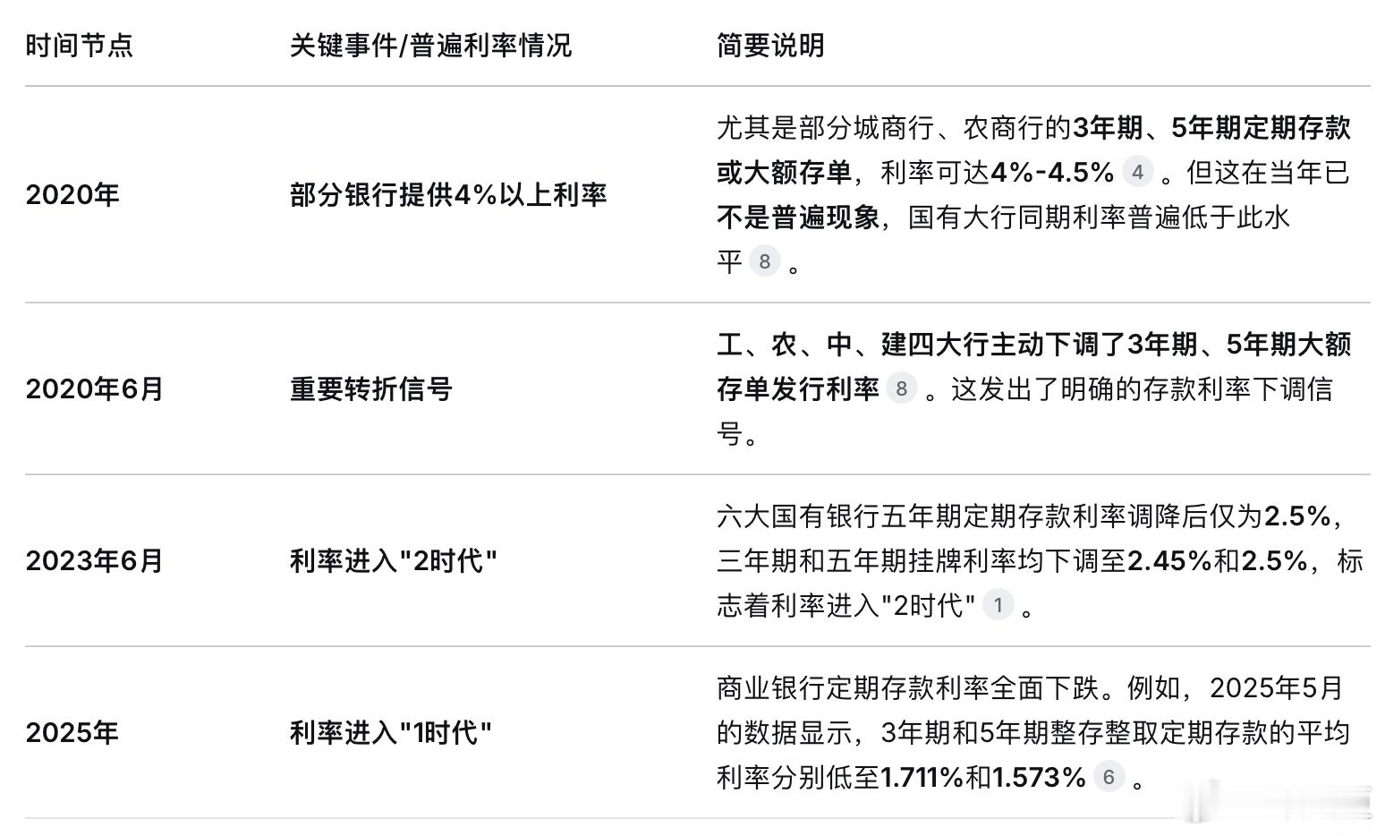 5年定存下架网友晒绝版存单2020年四大行在6月下调大额存单利率,以此为节点,银行存款利率开始逐步下降,2023年、2025年分别进入2时代、1时代,目前六大行一年期定存利率已跌至0.95%。但是先别慌!了解一下“新三金”理财法,或许能get到低利率时代的稳健替代!利率下行储户把钱挪进新三金