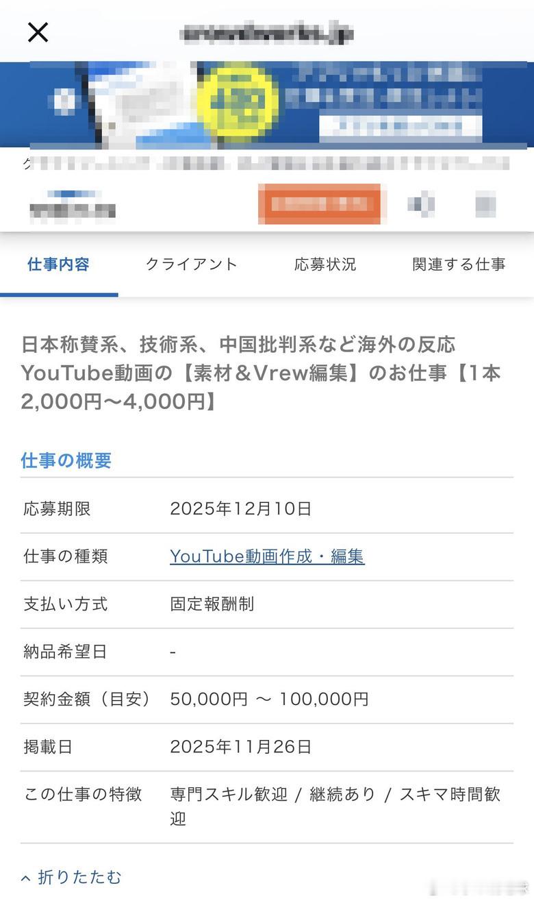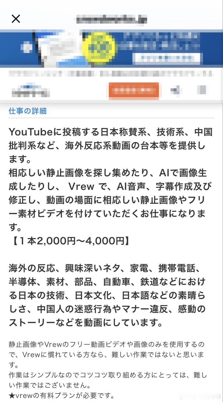 【这就是某些“外网真相”的源头?日本招募兼职:100元一条专门负责“吹日贬中” 】真是大开眼界。最近看到一则日本网上的兼职招聘广告,把我看笑了,也看清了外网某些视频的本质。(目前原链接已打不开)日本正发动无声战争 这则招聘启事明码标价,招募视频剪辑制作,内容极其“赤裸裸”:★ 工作内容: 制作“日本称赞系”、“技术系”以及“中国批判系”的YouTube视频。★ 具体要求: 视频要有“海外反应”(假装外国人很震惊),题材包括日本技术的伟大(半导体、汽车等)、日本文化的美好,以及“中国人的迷惑行为和违反礼仪”。★ 报酬: 每条视频2000日元到4000日元。兄弟们,2000日元现在汇率多少?人民币才91块钱呐,不到100块! 4000日元也就不到200块。这就把某些所谓的“国际舆论”底裤扒下来了:1️⃣ 廉价的仇恨产业链原来在某些势力眼里,抹黑中国形象、制造仇恨对立的成本这么低。不到100块钱,就能找个兼职,用AI软件(Vrew)拼凑几张图,配个AI语音,编造或者夸大一段“中国人没素质”的故事。这完全就是“谣言流水线”,成本低得令人发指。2️⃣ 可悲的“精神胜利法”看看这要求:一边要拼命找素材吹嘘日本技术天下第一、日本文化世界震惊;另一边必须拉踩中国,重点突出“中国人没素质”。这说明了什么?说明他们急了,也虚了。需要靠这种人为制造的“电子鸦片”来麻痹自己,通过贬低邻居来获得那一点点可怜的优越感。这不就是典型的“阿Q精神”吗?3️⃣ 毫无技术含量的“洗脑”招聘里特意说了,用AI生成图片、用现成素材库就行,“只要习惯了Vrew就不难”。这意味着这些视频根本不需要事实核查,不需要新闻伦理,只要情绪到位,只要能煽动对立,就是合格的“产品”。想想平时在外网,或者某些搬运号上看到的那些“外国人惊呼日本不可战胜”、“中国游客又丢人了”的视频,背后很可能就是这样一个拿着100块钱工资的兼职人员,一边吃着泡面,一边用AI瞎编出来的。这种工业化生产的偏见,除了自我催眠,改变不了任何现实。咱们看着图一乐就行,但也得擦亮眼,别被这种廉价的“认知战”带了节奏。 日本日本战争准备曝光