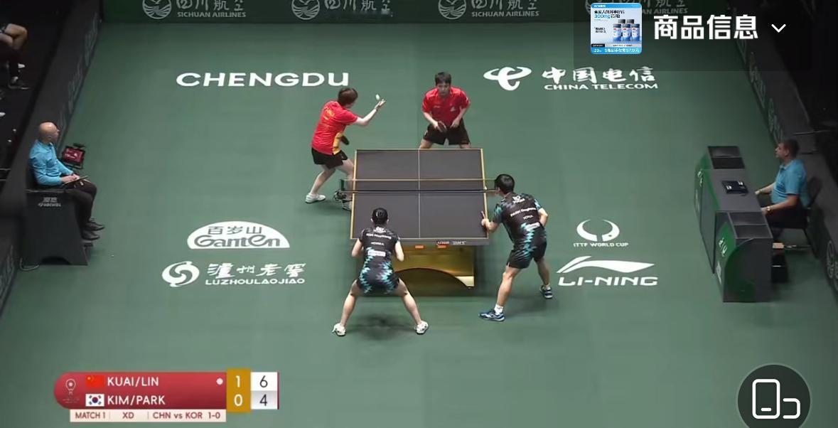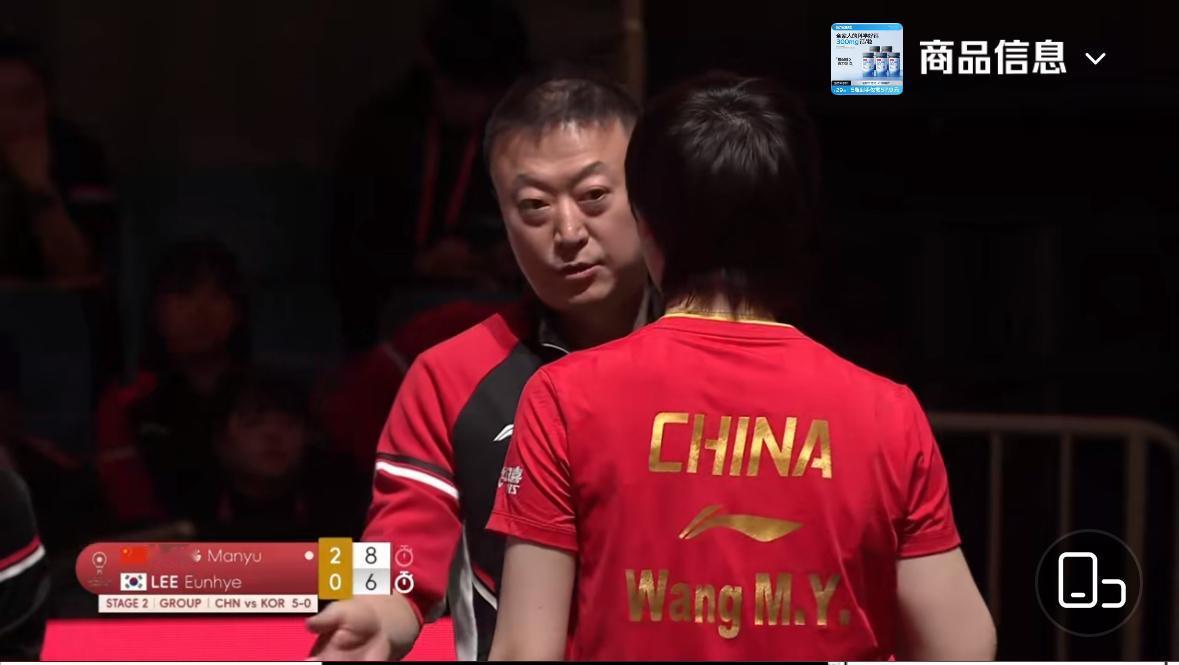 成都混团 中国VS韩国 王曼昱3:0李恩惠 马琳指导暂停叫的及时! 12月4日,成都混团世界杯第二阶段 中国目前6:0韩国 第一盘 林诗栋/蒯曼3:0朴康贤/金娜英 11:5,14:12,11:8 第二盘 王曼昱3:0李恩惠 11:7,11:7,11:8 今天动漫的表现值得表扬, 特别是第二局比赛, 在非常困难的情况下, 顽强拼搏, 硬是没让韩国队拿到一分, 这就团魂! 王曼昱今天打的也是非常正常, 特别是第一局, 曼昱想偷发一个长球,太长了, 出界,紧接着李恩惠最后关头也发球失误…… 第三局,马琳指导的暂停叫的好!