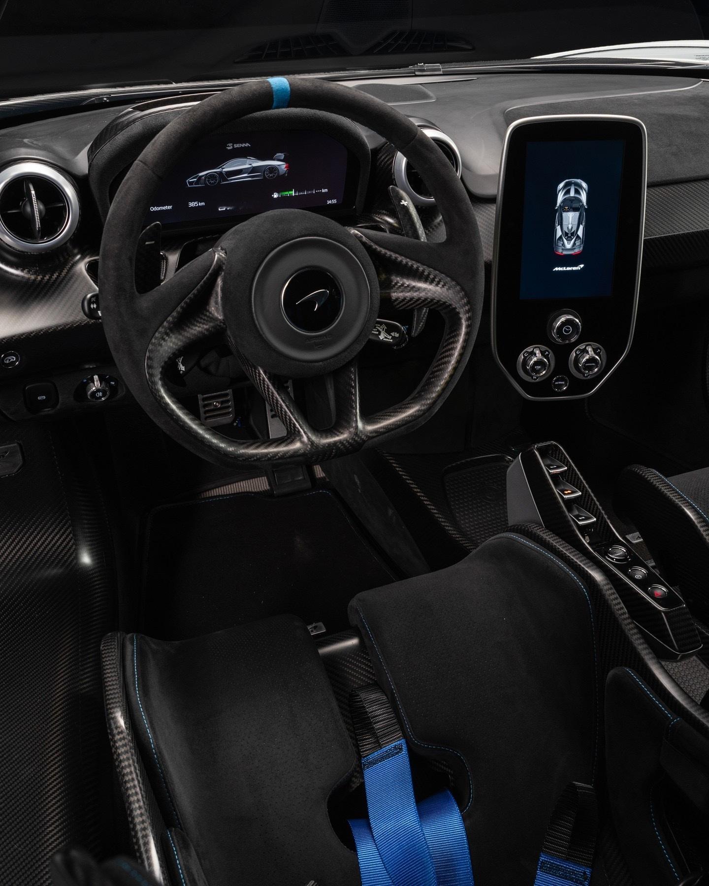 这款超跑围绕一个使命进行工程设计:成为最快的。迈凯伦塞纳的到来只有一个目标,即在赛道上创造出最快的合法道路车辆。它几乎完全由空气动力学塑造,并以赛车史上最伟大的驾驶员之一命名,作为F1和P1之后的第三部作品,属于迈凯伦终极系列。在表面之下,它搭载了一台双涡轮增压4.0升V8发动机,拥有789马力,以及一个轻量化结构,使其成为自F1以来最轻的麦克拉伦。这个2019年的车子,是500辆生产中的第48辆车。新交付到迪拜,它采用了阿拉斯加钻石白色,搭配裸露的碳纤维和蓝色装饰,突出了其空气动力学设计和主动前翼尖。碳纤维分流器、天鹅颈后翼、扩散器和通风口将气流转化为真实性能,产生高达800公斤的下压力。打开蝴蝶门,进入黑色的Alcantara内饰,配有蓝色安全带、碳纤维和铝合金换挡装置。由于只有385公里的行驶里程和单一车主,它几乎保持全新状态,并由阿布扎比的麦克拉伦最近进行了维护。这是其时代最具定义性的超级跑车之一,工程设计目的明确。迈凯伦塞纳豪车超跑老纪侃车