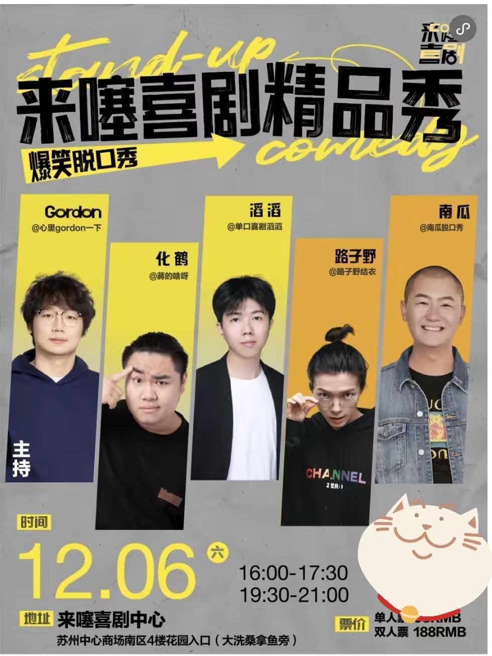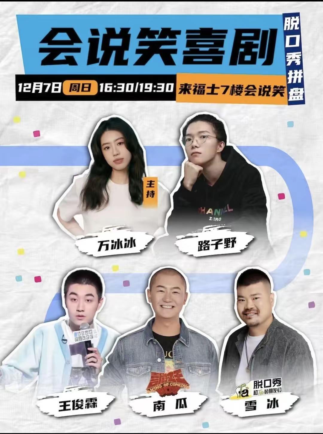 12月出来演演出。12.6苏州来噻喜剧12.7杭州会说笑喜剧12.13深圳开花喜