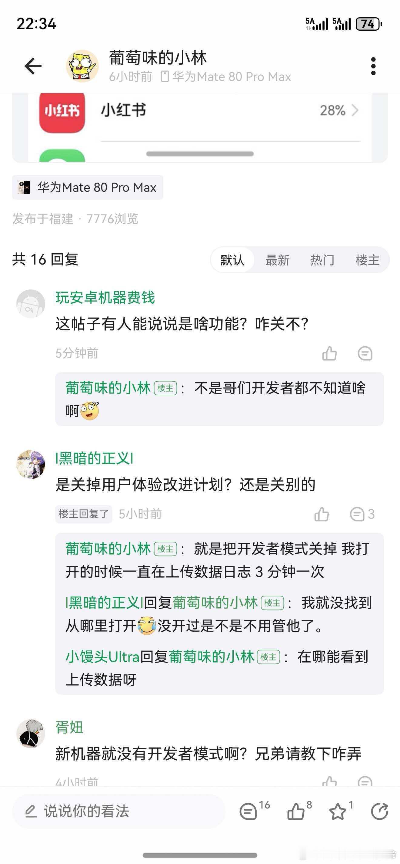 我好像理解为什么厂商不管酷安评分了,有人连开发者模式是啥都不知道那随便怎么骂吧,他说啥都很合理