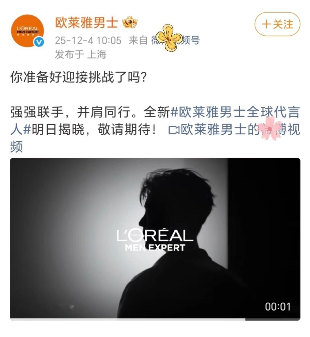 恭喜欧莱雅男士,签下首位全球代言人肖战,财神爷驾到