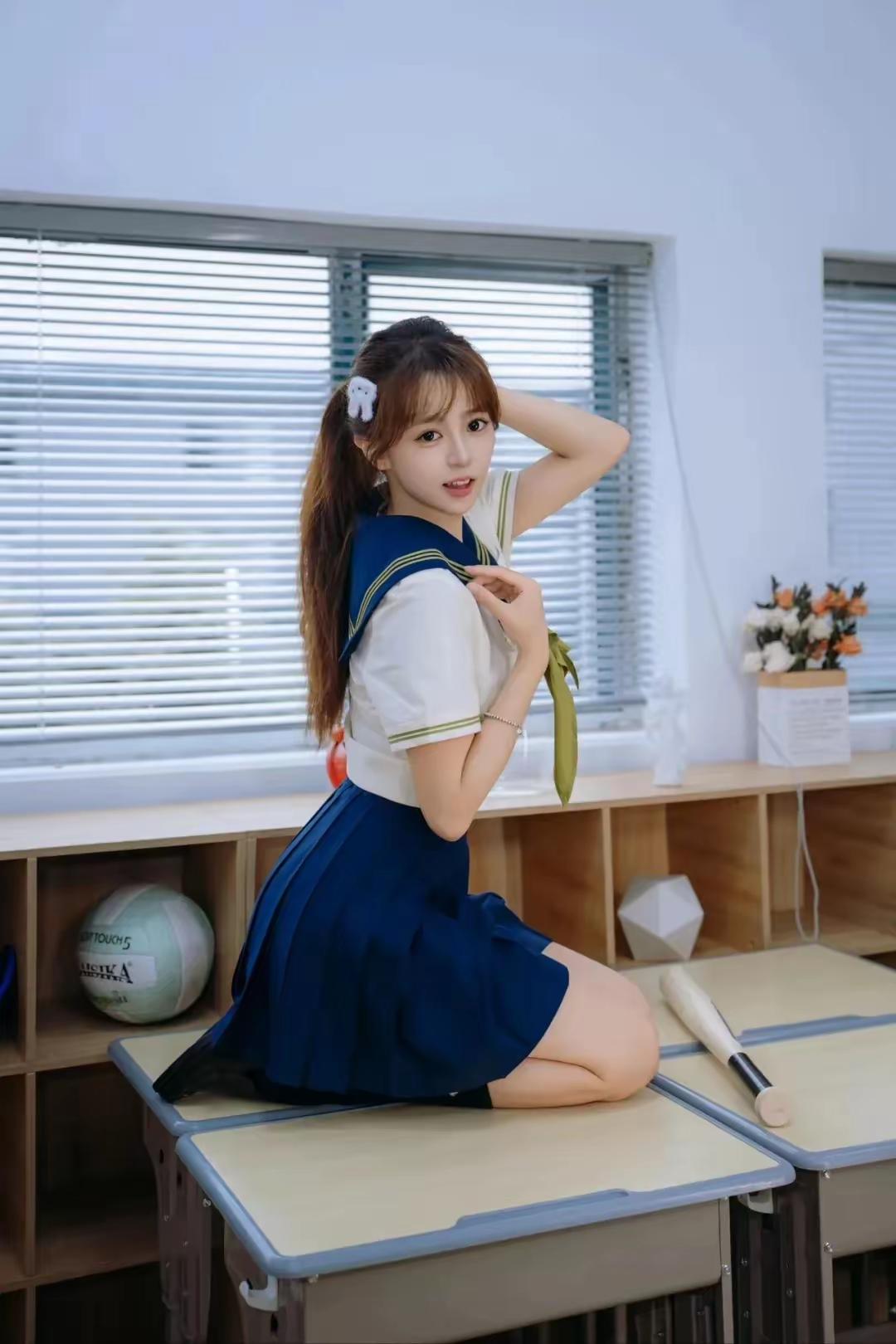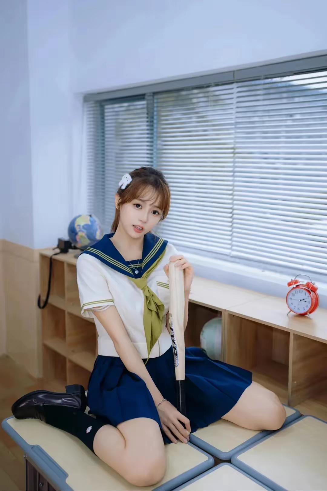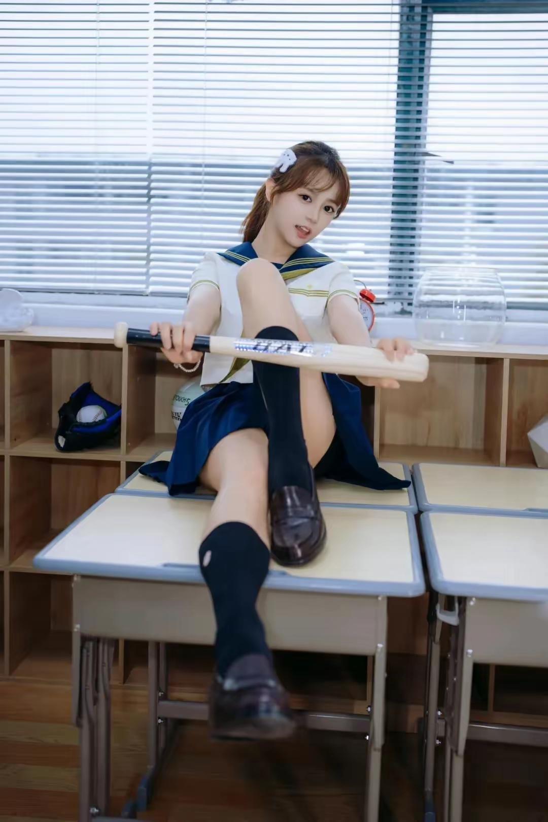 JK制服模特写真,校园少女与棒球棒,青春活力满满!🎈📚🏈