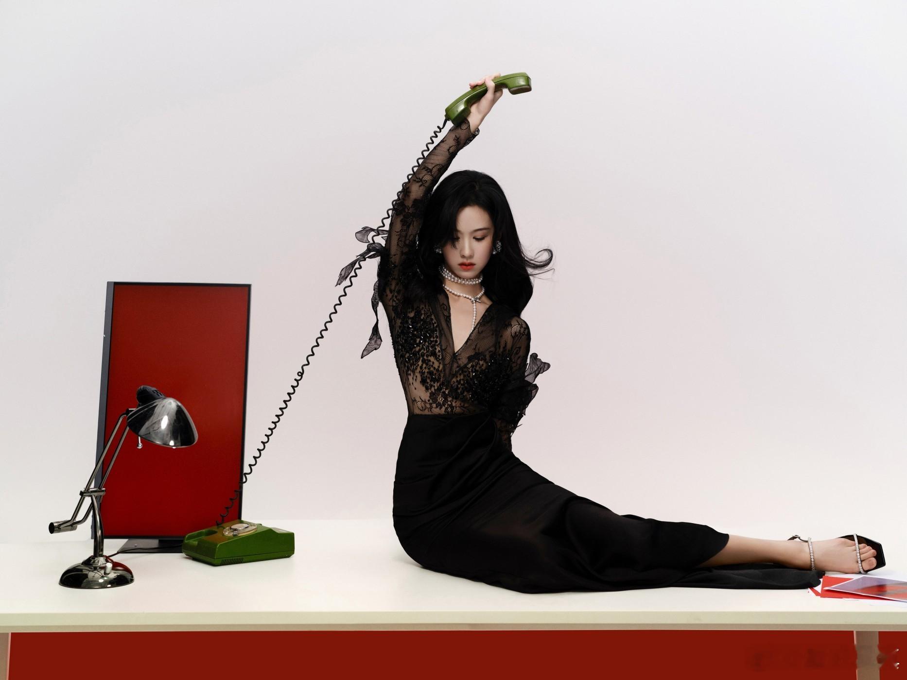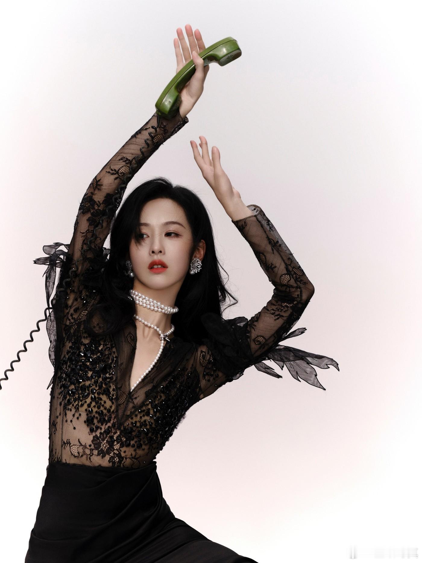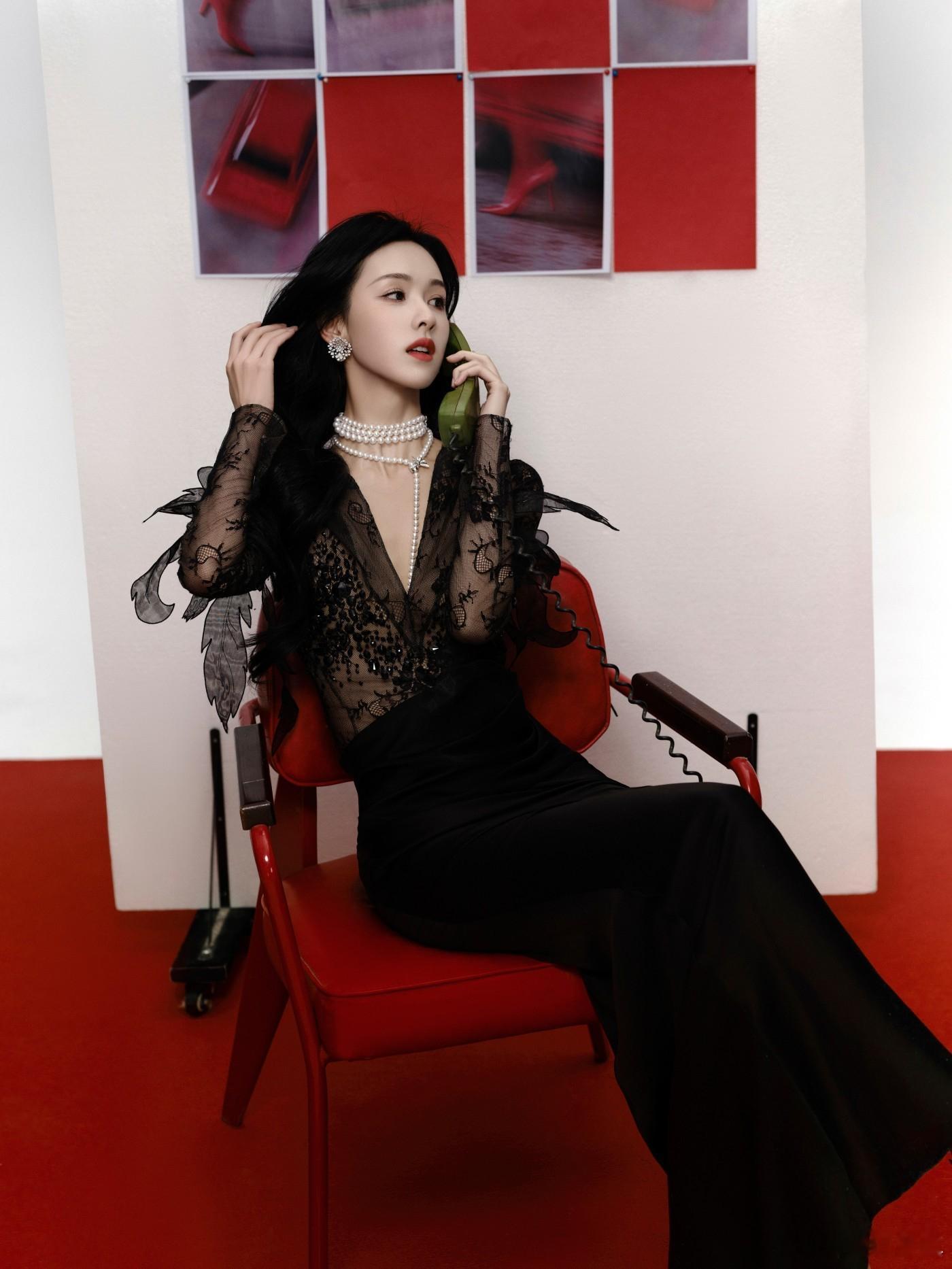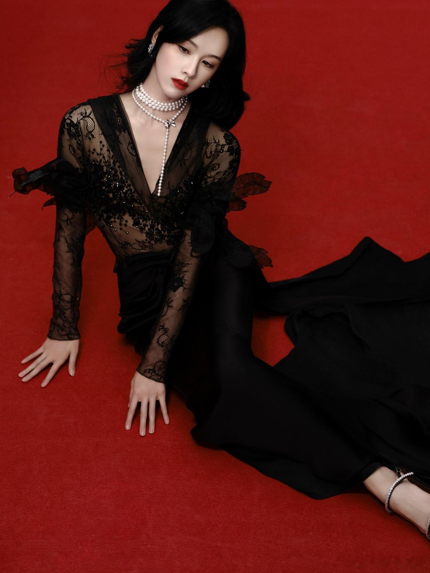 童瑶黑色V领抹胸长裙,奢雅不凡,精琢焕彩。光影流动中摇曳动人身姿 童瑶