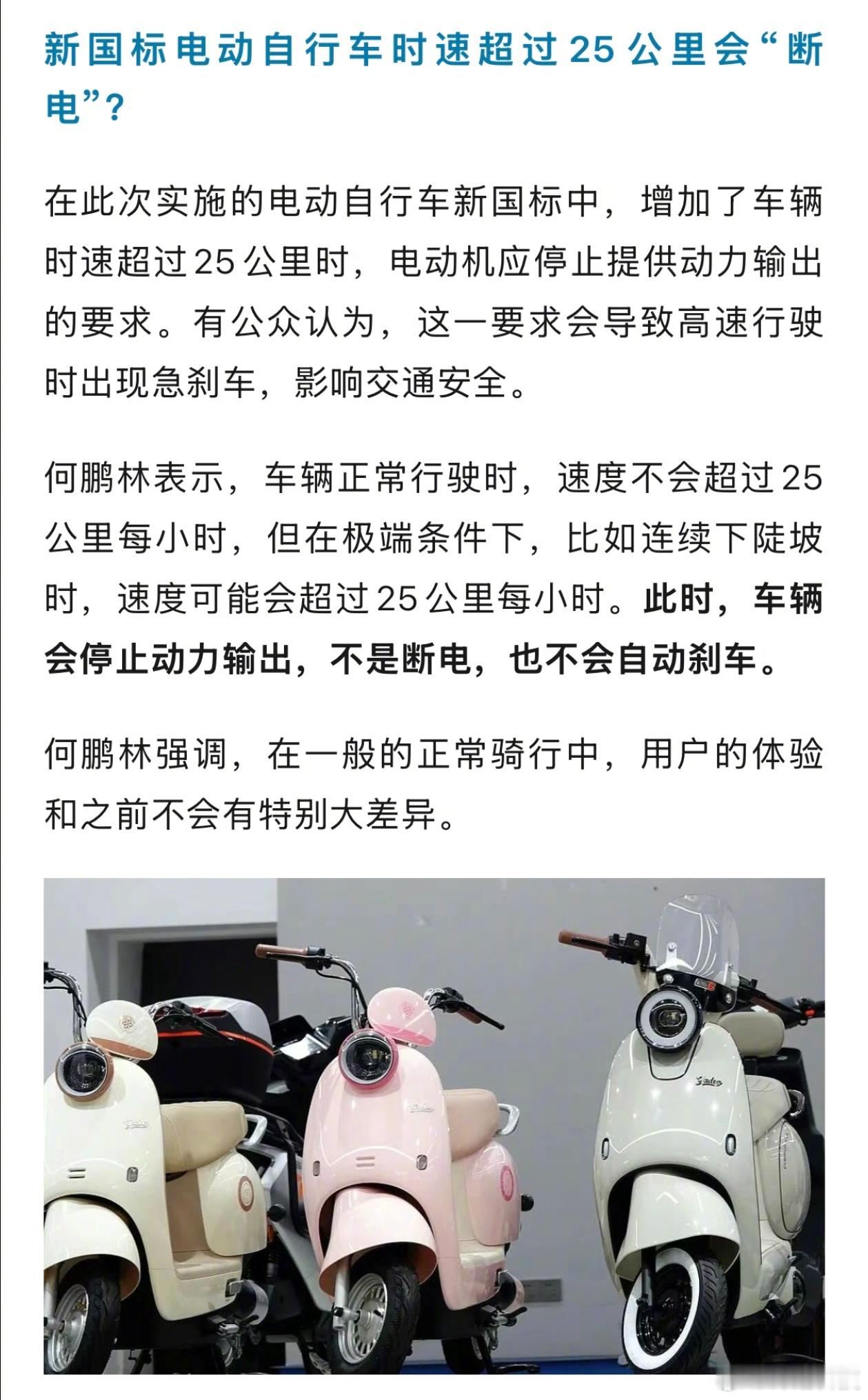 关于新国标电动车时速超过25公里会“断电”的解释。