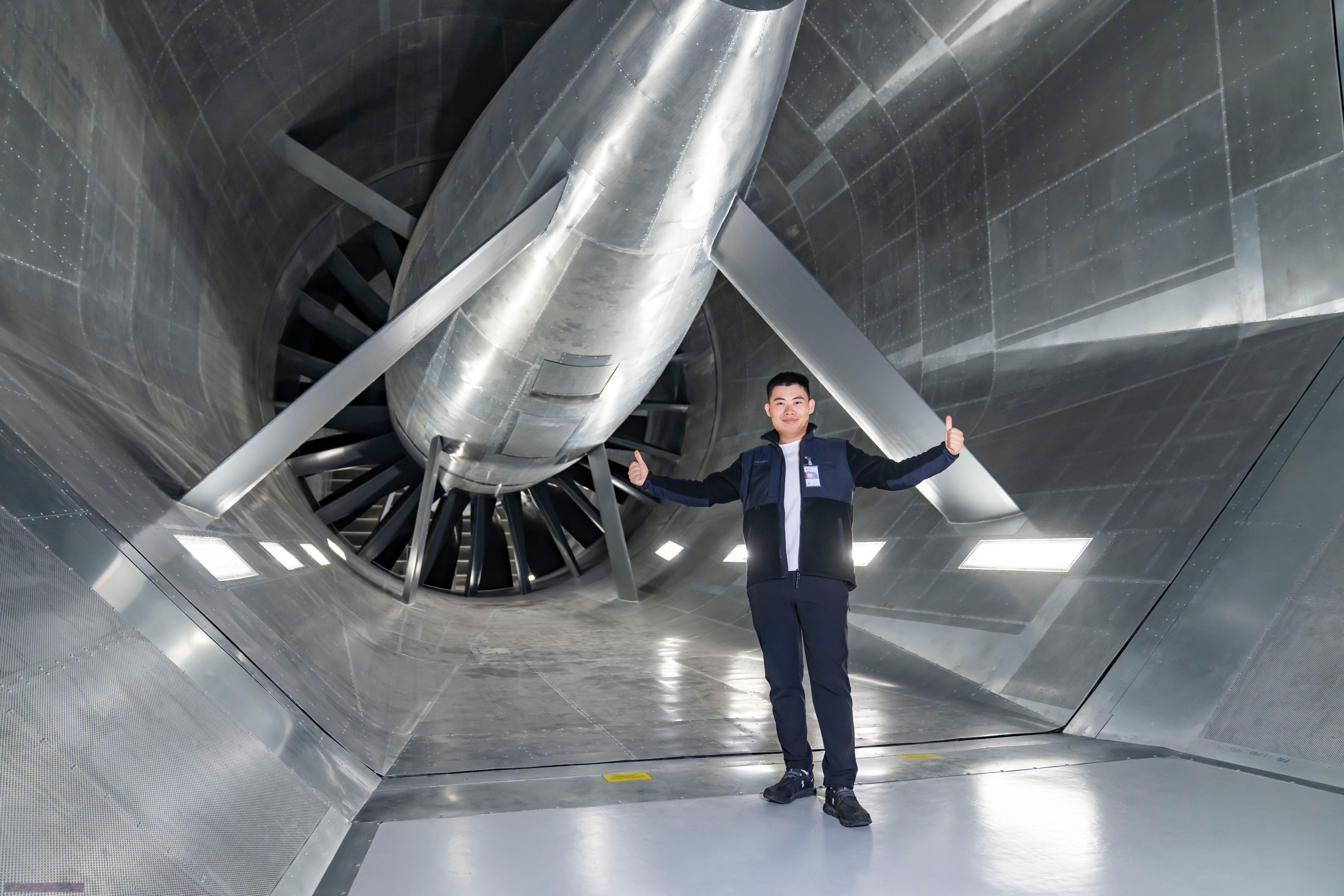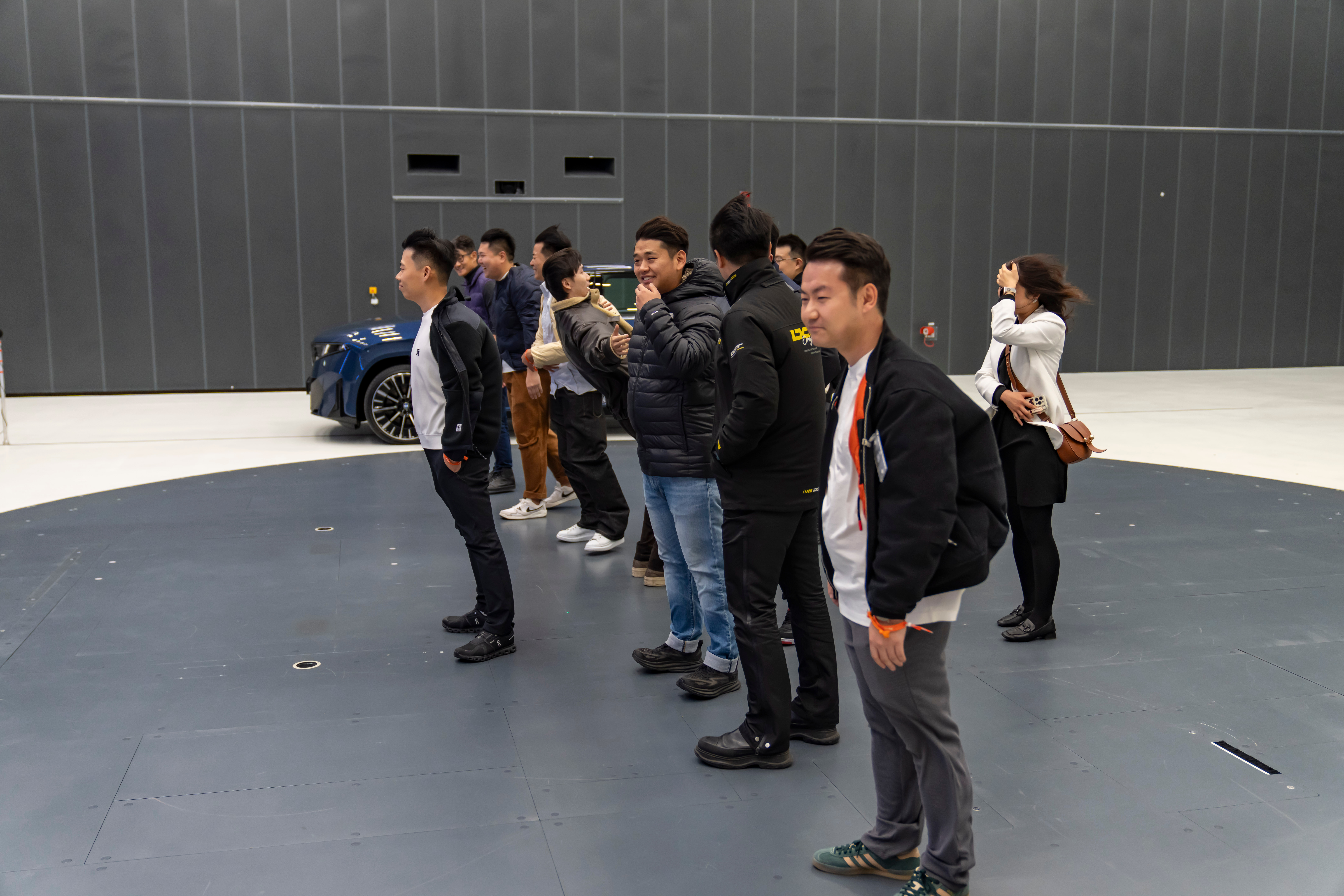 来带大家看看BMW在德国慕尼黑总部FIZ研发中心的 全新空气声学与电驱中心(AEC)看看这个全球规模最大、最安静的垂直声学风洞,长近100米、高45米、宽25米,图7-9的这个风轮极其庞大,重150吨而且为了避免共振,它和整个实验室解耦开,和一个350吨重的混凝土底座+12组减震弹簧连成整体,避免对测试区域产生震动,影响精度。这个风洞可以精确测量车辆在正面气流下的噪音表现,最高风速能达到250km/h,可以模拟真实行驶工况,精准测量和分析汽车的噪声源并进行优化。从噪声源的识别与定位,到气动噪声优化、部件噪声验证,再到整车声学性能标定,所有环节都在这里完成。在新能源汽车专项测试方面,这里会重点关注风噪、胎噪,尤其是电机啸叫等用户极为在意的细节,毕竟电车没有了发动机的噪音遮盖,对于噪音的感知会更加明显,同时BMW从设计之初,就将这些用户体验放在了首位。图5是我在60km/h风速时的亲自体验,如果风速再快一些,我就站不住了宝马自有的这些实验室实在是太有东西了,自有了以后无论是利用率还是使用时的颗粒度都会有很大的提升,所以宝马的自研深度很明显是超越其他品牌的。 德国