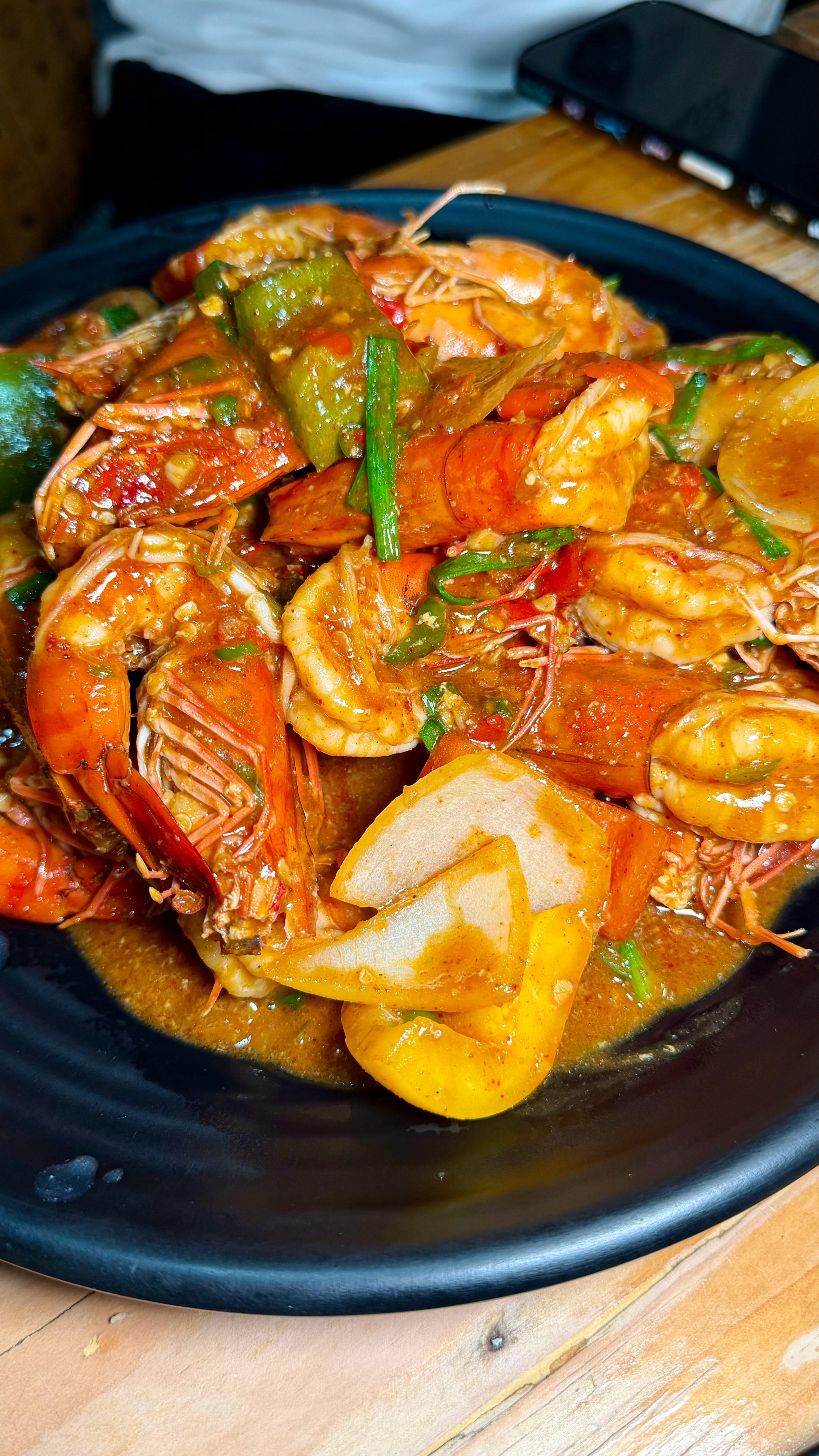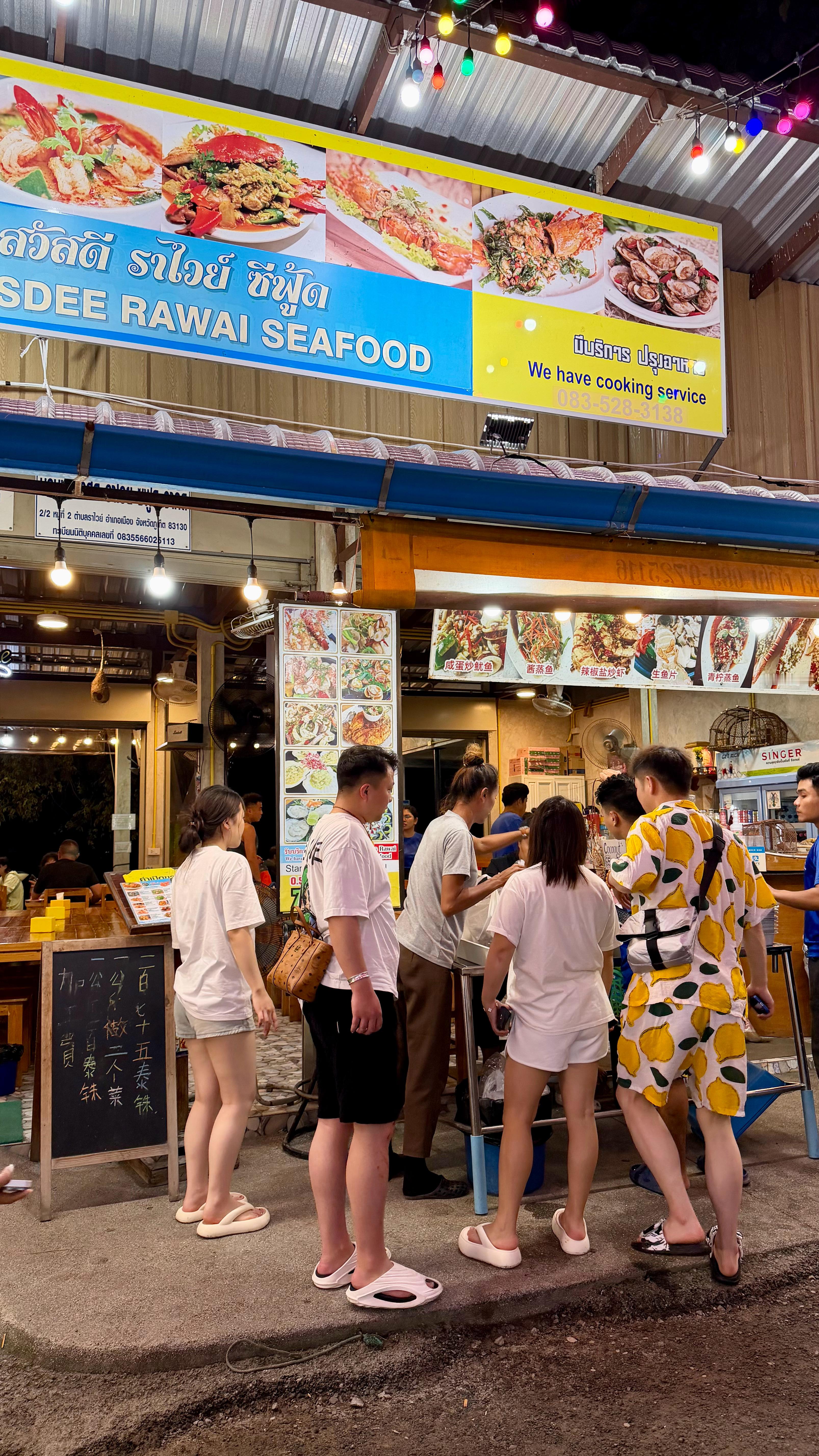 泰国旅行普吉岛旅行丽江客栈豆花民宿 客栈老板是如何虐待员工的?昨天连续两顿让他们胖干海鲜,他们说想吐了,晚上我们在拉威海鲜市场777摊位(图1)买了¥600海鲜,去加工(图2)¥540(包含加工费+5瓶啤酒+2个饮料),两只青龙和四只花蟹煲了3份粥,没有潮汕做的鲜美,虾白灼了一份、辣酱炒了一份,都很不错,虾很q弹,炒的味道也很好,蒸的斑鱼就比苏梅鱼好吃太多了,辣咖喱炒鱿鱼也很棒,炒的螺肉刚端上来还可以,冷了就硬了,生蚝很拉垮,肉基本都没有,白灼的花螺没话说的,炒的空心菜味道也很棒,蒜泥蛋炒饭也是满口幸福感!连续爆吃了两顿海鲜我的伙伴们就受不了咯,说再也不想见到海鲜了,今天12月4日,带他们珍珠号出海游玩!🛥️ 泰国·Phuket Island