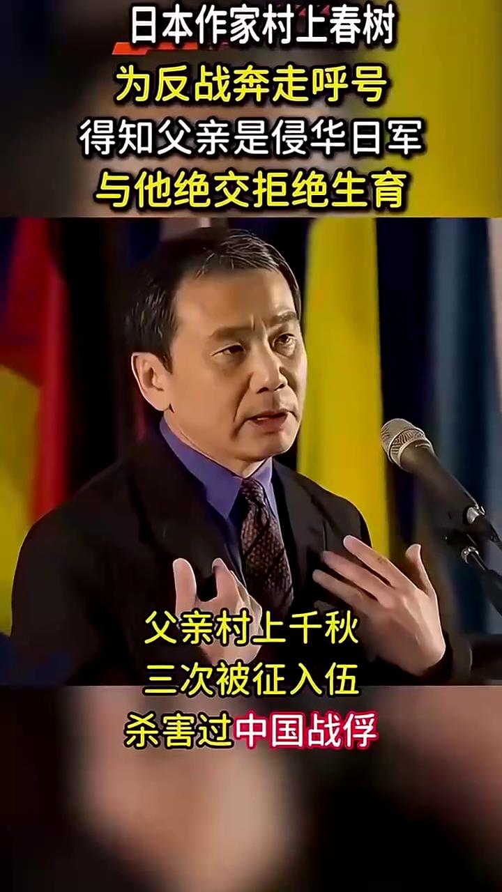 为反战奔走呼号,得知父亲是侵华日军,与他绝交拒绝生育。他替父亲公开道歉,要求政府承认罪行。 日本作家村上春树为忏悔还罪,他至今不生后代,终结恶魔基因。父亲村上千秋三次被征入伍,杀害过中国战俘,二人超20年不来往,直到父亲年迈住院。