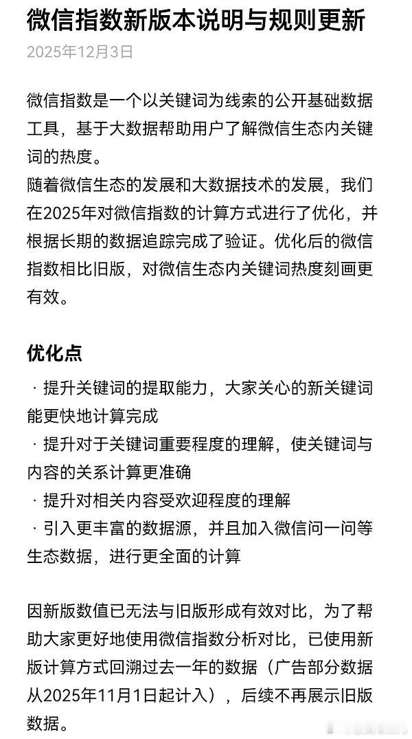 微信指数改版后,白鹿唯一“短板”也不存在了。曾经的微信指数更依赖营销,因为白鹿营销通稿少,微信指数一直很低,此次改版降低了营销权重记录,提升了关键词搜索权重,更真实记录自然数据,让微信指数更具有权威性。白鹿实火所以排名自然上升,同时也暴露了一些之前的“营销大户”。
