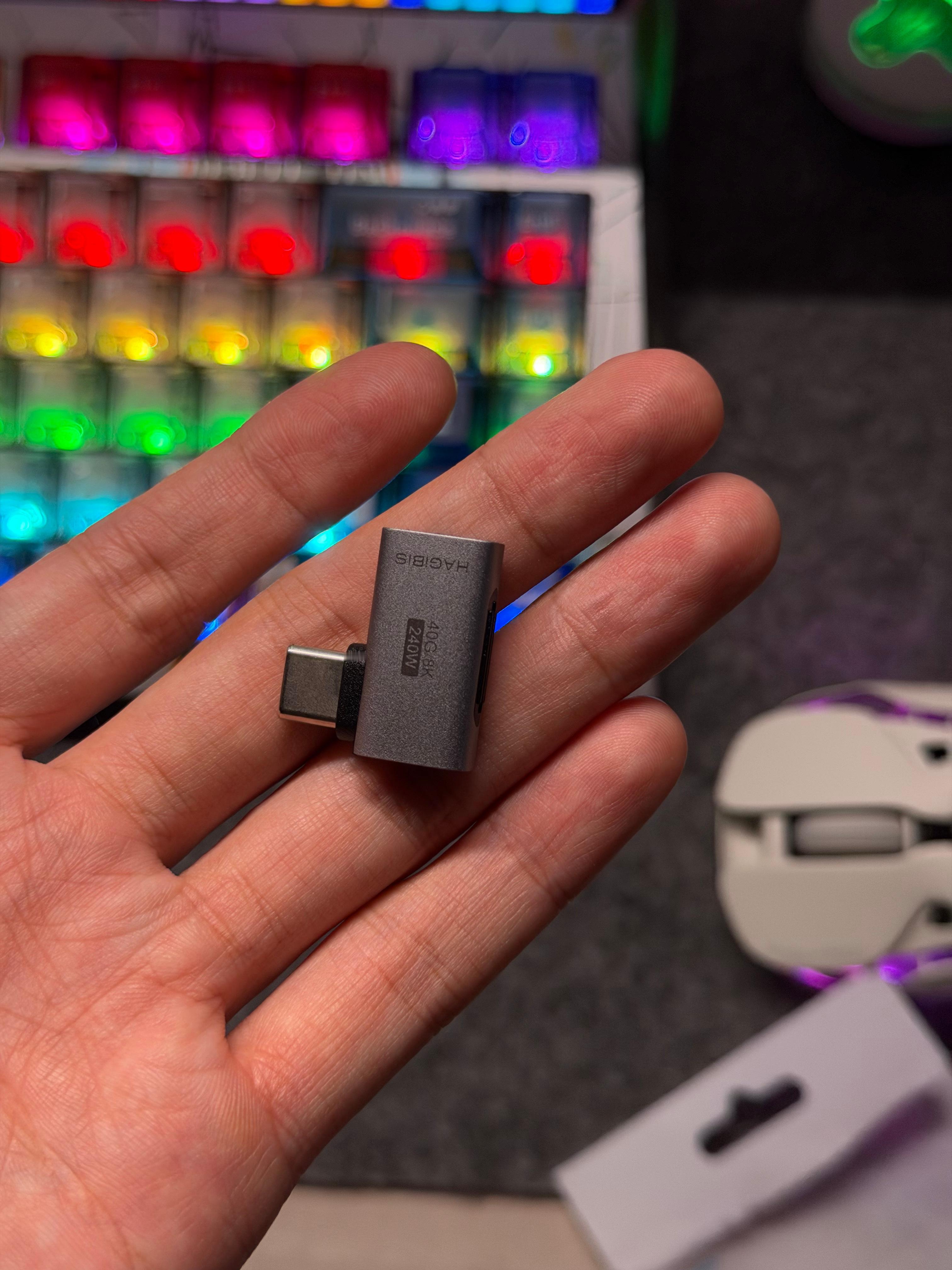 买个海备思的L转接头,质感真的好,虽然十几块也够买一根线,但桌面空间小用这个就很