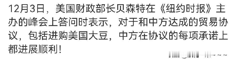 呵呵! 美财长开心死了?尝到甜头了! 他说,我们正全面履行协议承诺! 这家伙,我看是得了便宜还卖乖,不知道我们是讲诚信的人呀。 难道美国没有放开高端芯片管制吗?关税不是又延期了近一年吗?英伟达老板不是说了游说美联邦政府成功!这协议承诺也是祈求来的吧?