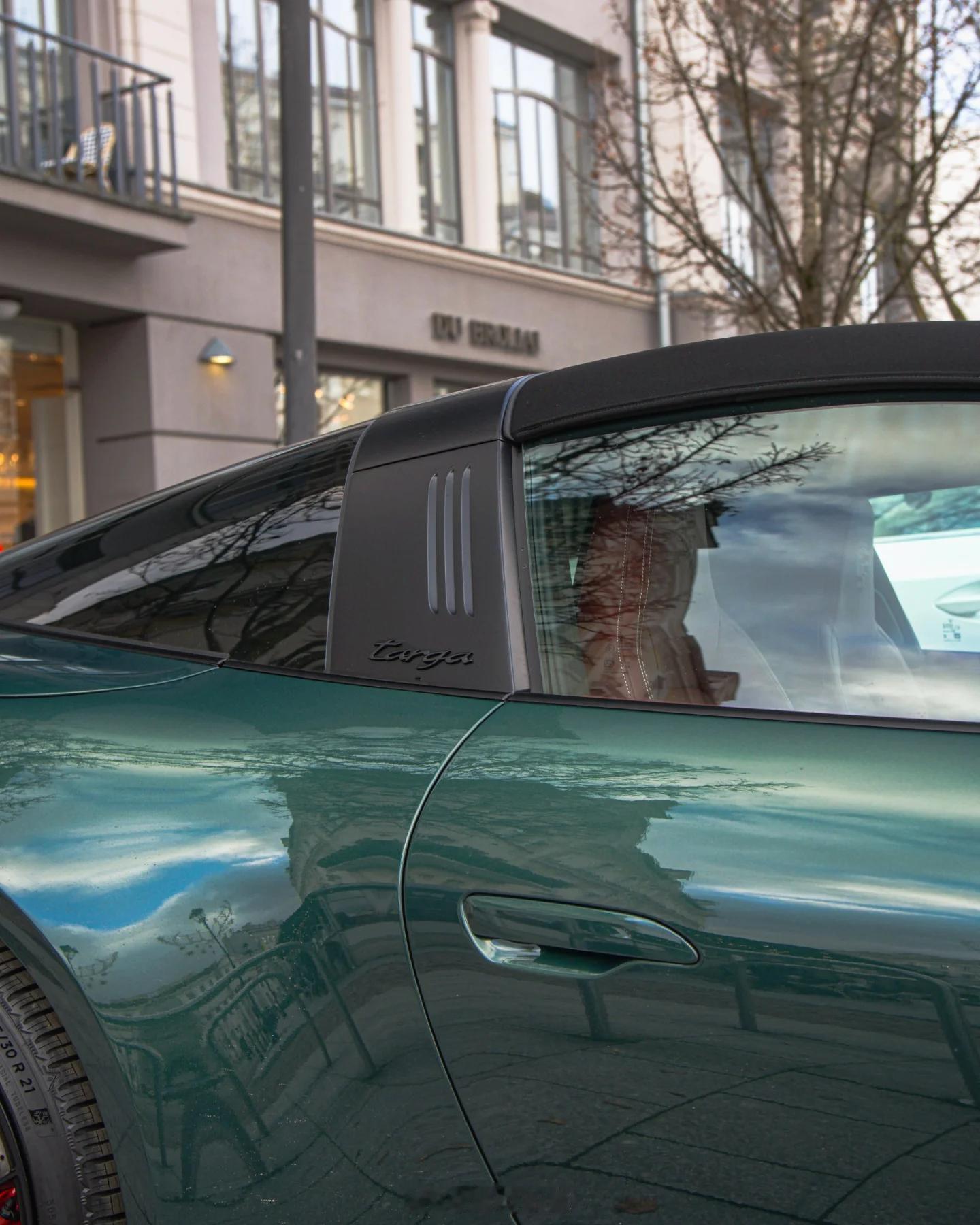 Porsche Racing Green Metallic Targa 4 GTS很佩服那些为了一台精心选配的车,付出半年甚至更长时间等待它来到眼前的车主,有经济实力同时也愿意付出更多时间成本毕竟在一款车刚上市的时候就付定金下订,到提车时候有优惠这中间沉没的成本是很多人不愿意承受的,有的车刚上市的时候要加价好几万,等半年后能优惠十几万再就是这种个性化定制的车辆,流入二级市场时也会有更高的贬值幅度,因为你喜欢的风格仅仅是你喜欢的,并不是下一个车主喜欢的