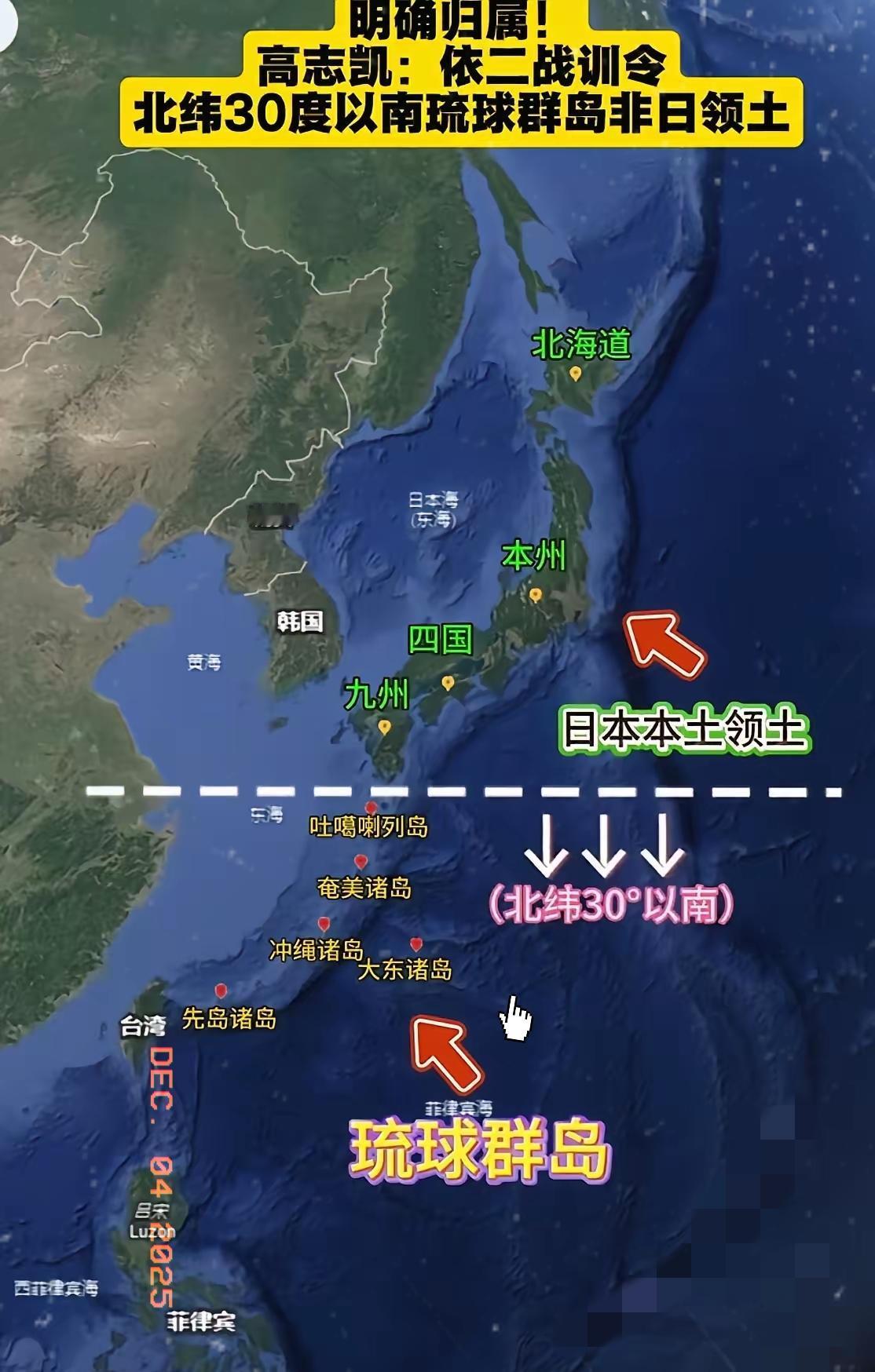 高志凯说的对,按照日本投降书接受的波茨坦公告,除日本北海道,本州,四国,九州以外的地方不是日本领土,因此,琉球群岛是日本非法占领的,所以现在日本在与那国岛和附近其他岛上驻军是不合法的,战胜国可以随时命令其撤出,否则可合法地予以打击。 日本连琉球的主权都没法理依据,不过是靠着美国移交的施政权强占,在与那国岛驻军本身就是违背二战秩序的越界行为。 自己还背着“非法占领”的历史包袱,居然敢妄谈干涉台湾问题,简直是本末倒置。 台湾是中国领土早被《开罗宣言》明确,日本作为战败国,本就该恪守战后秩序,哪来的资格说三道四。 真正该厘清的是日本的定位:战败国的领土红线不能碰,非法驻军的歪路该及时回头。 与其盯着别人的领土挑事,不如先正视自己的非法占领事实。 你觉得该如何让日本遵守战后国际秩序?来评论区聊聊你的看法~