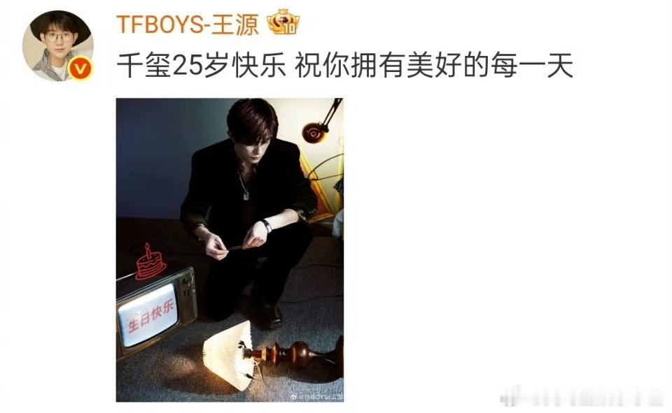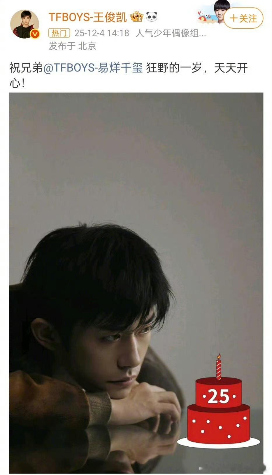 团魂时刻!易烊千玺今天发了二十五岁生日蛋糕后,王俊凯王源紧接着为易烊千玺送上生日祝福!王源王俊凯为易烊千玺庆生