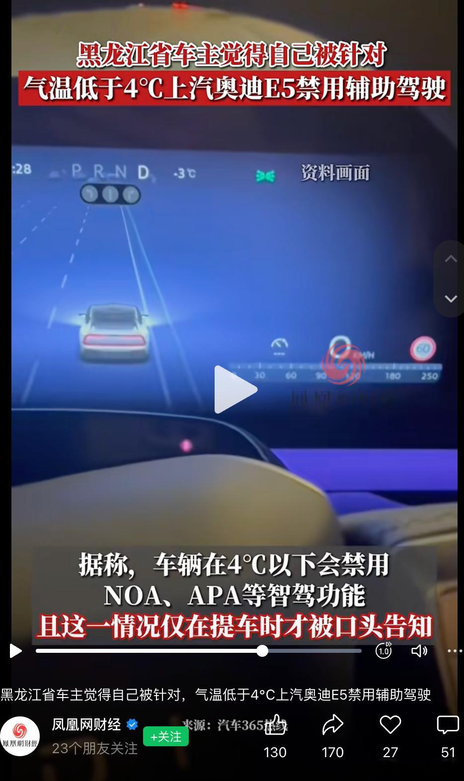 当气温低于4度,自动禁用辅助驾驶NOA,APA 泊车也不行。哈......这是啥原理