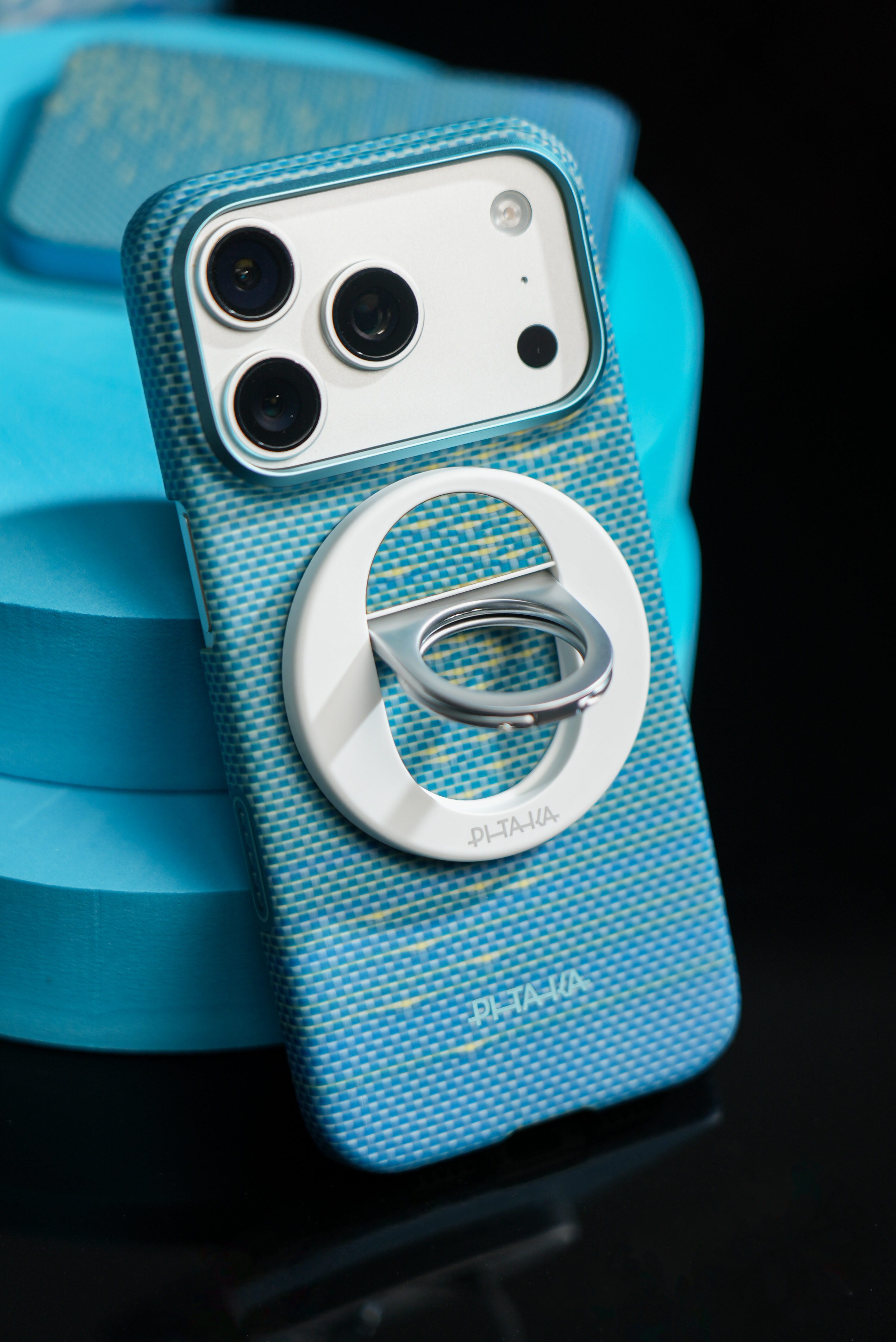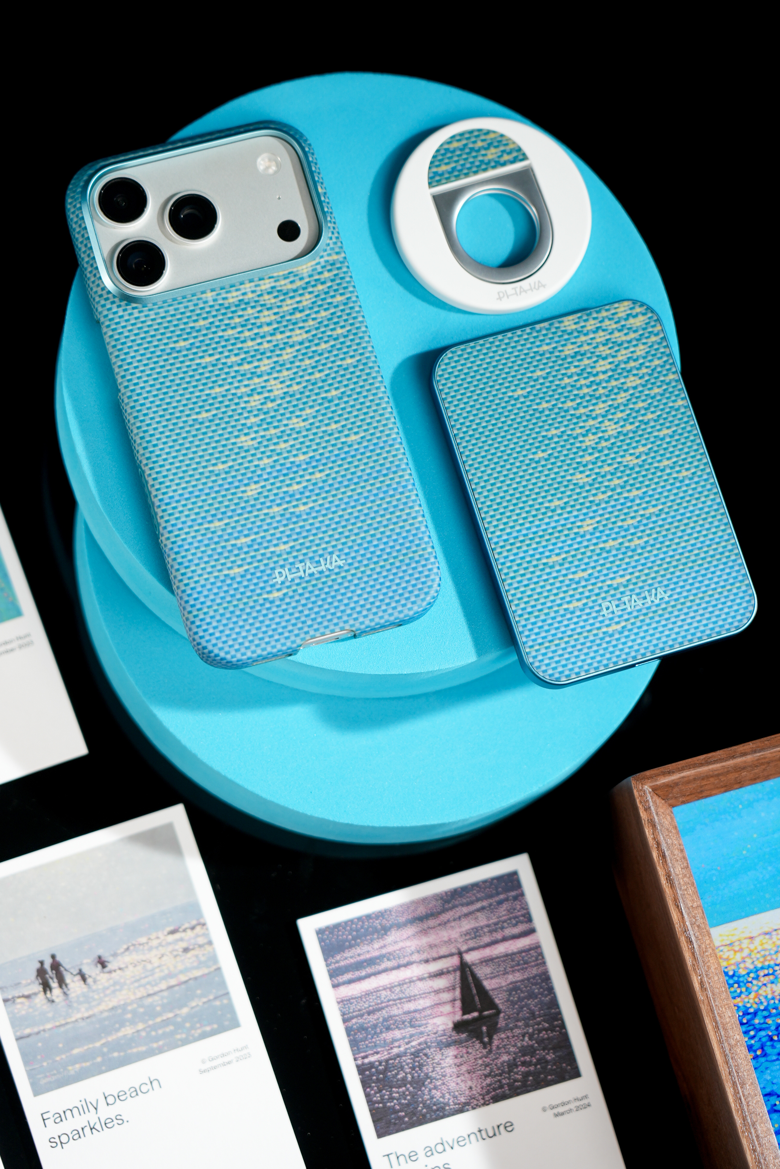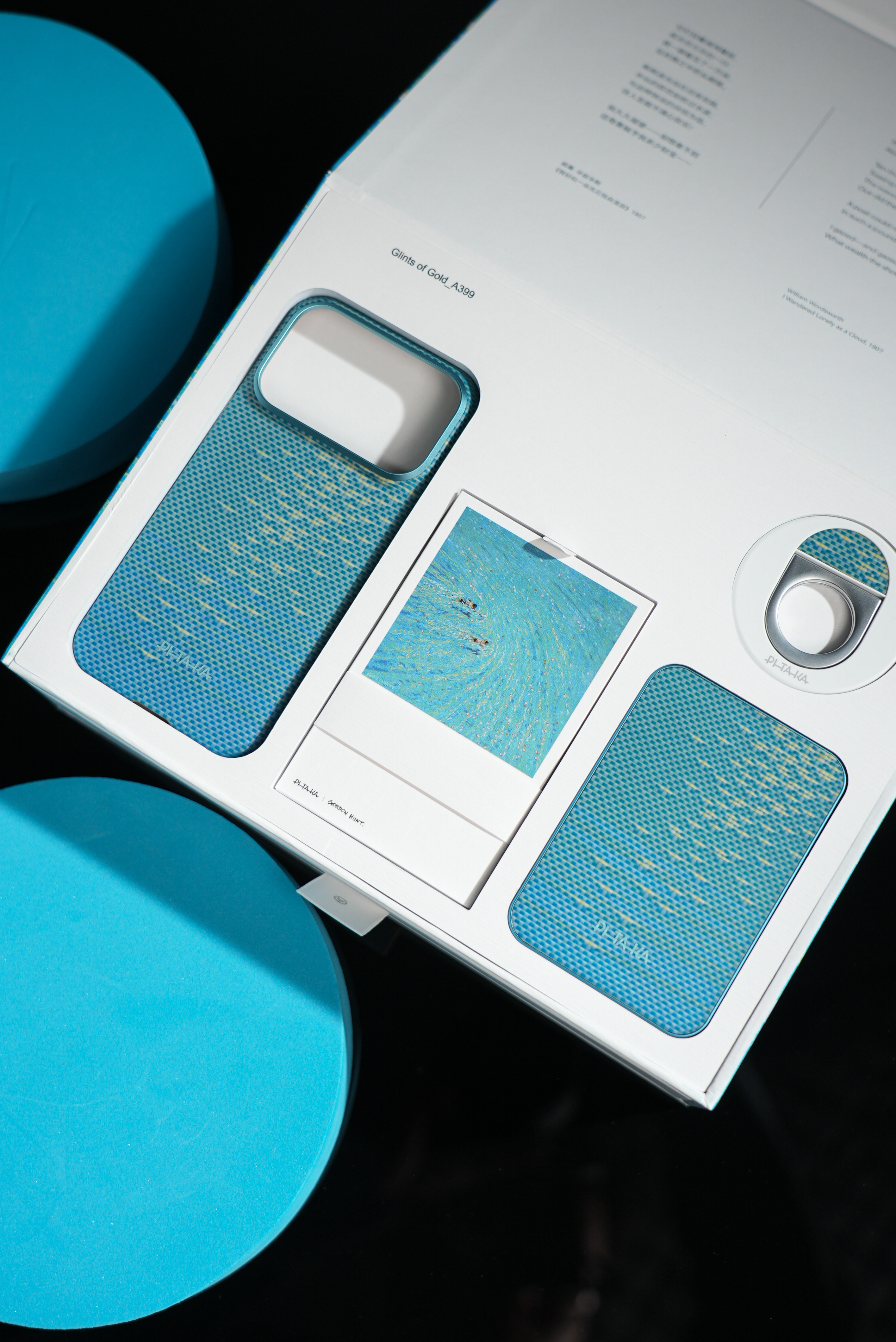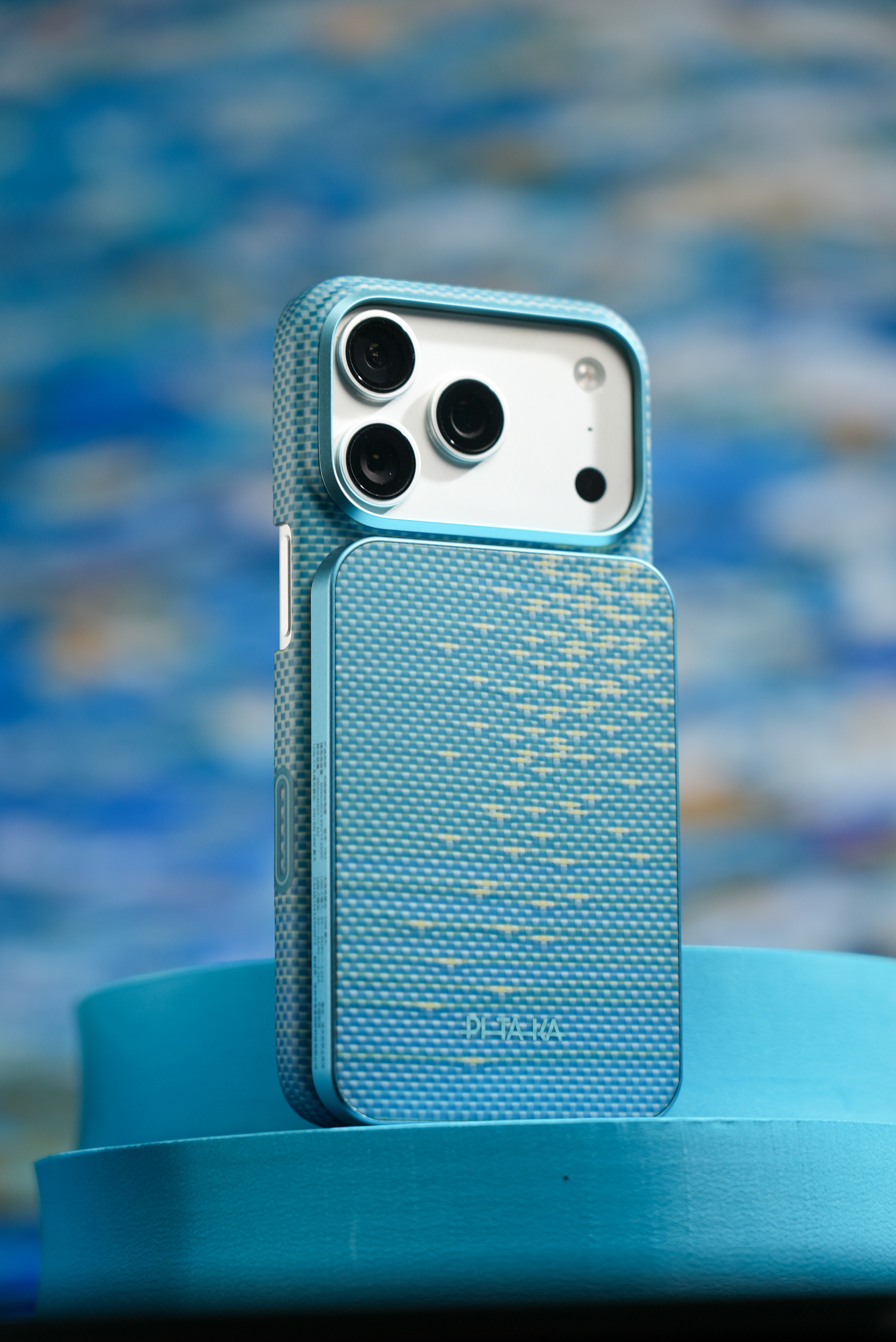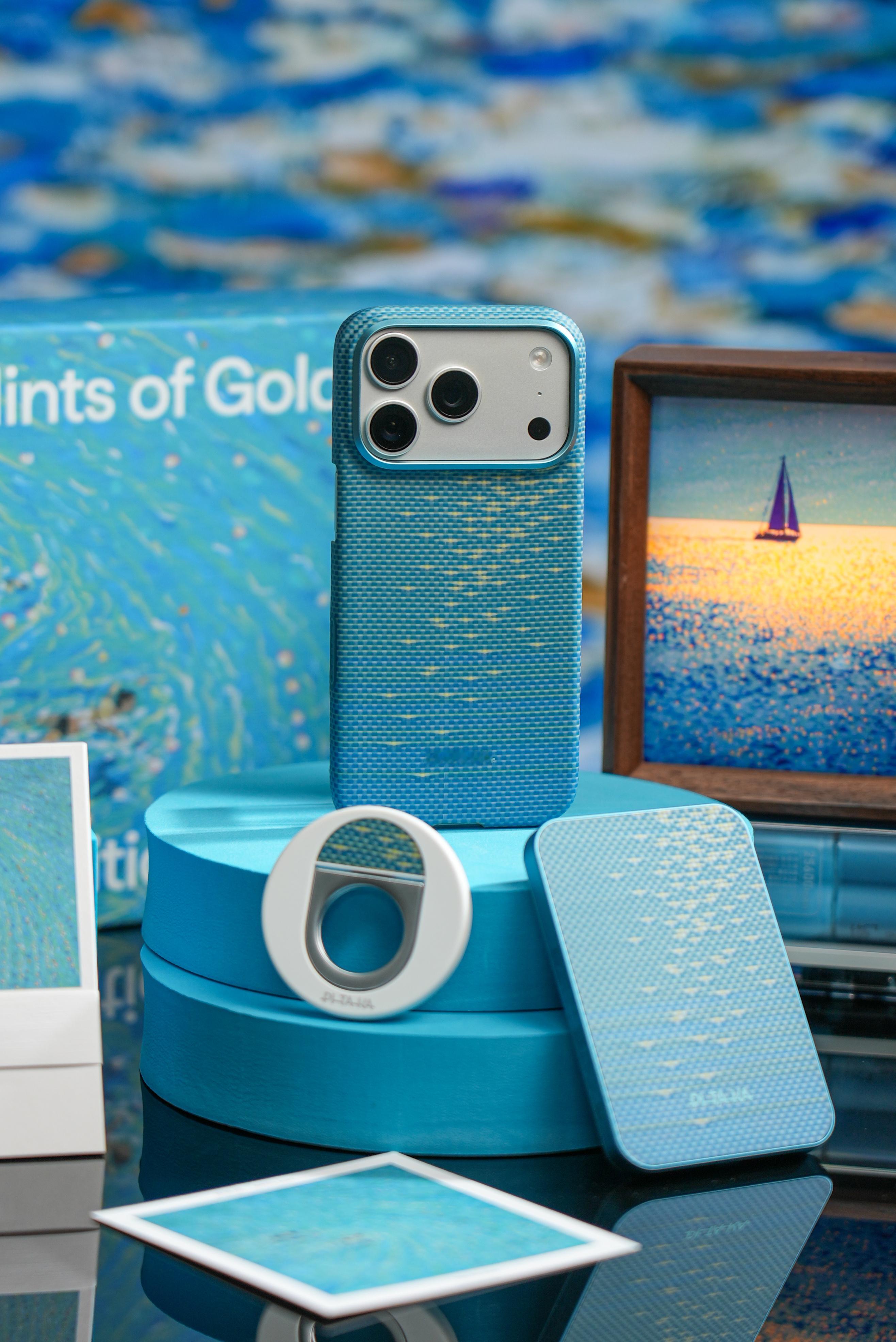 分享下刚拿到的PITAKA浮光跃金联名礼盒,实物比图片有质感多了。手机壳是芳纶纤维的,摸起来滑溜溜的,还特别薄,握在手里几乎没额外重量。阳光底下看特别有意思,编织的纹路像海面闪着金光,很灵动。配套的磁吸充电宝和指环支架跟手机壳风格搭,用着不违和。最意外是那个小灯光画,点亮后光影很好看,和手机壳的设计呼应上了。新品驾到