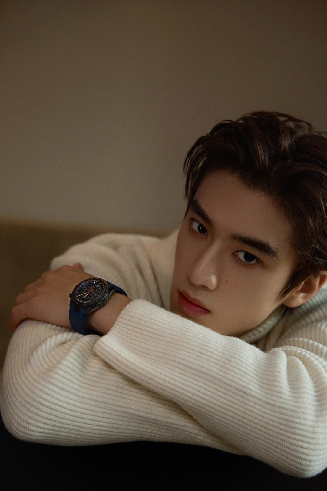 泰格豪雅营业大片,身穿白色针织高领毛衣,佩戴TAG Heuer泰格豪雅卡莱拉系列上海限量版 Extreme Sport 陀飞轮计时码表,是上海摩登风貌与赛车竞速激情碰撞,更是前卫设计与都市肌理的完美融合!极具前卫精神的艺术魅力,与帅哥的锋利气质相得益彰,尽显摩登风采👏