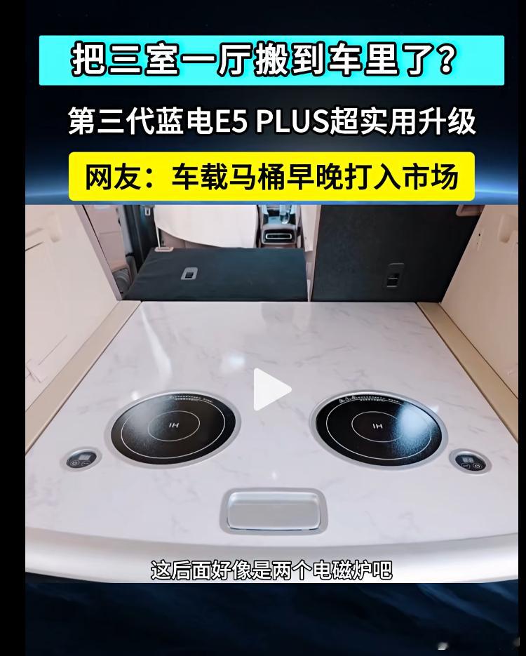 蓝电E5,车后面放两个电磁炉……主副驾之间还有个饮茶的(图2)。感觉很复杂,这辅助功能真的需要吗?说不需要吧,感觉如果有时候神经(精神)下,还是需要的。你说需要吧,的确又不怎么需要,如果是露营,自己也会带这些小装备。