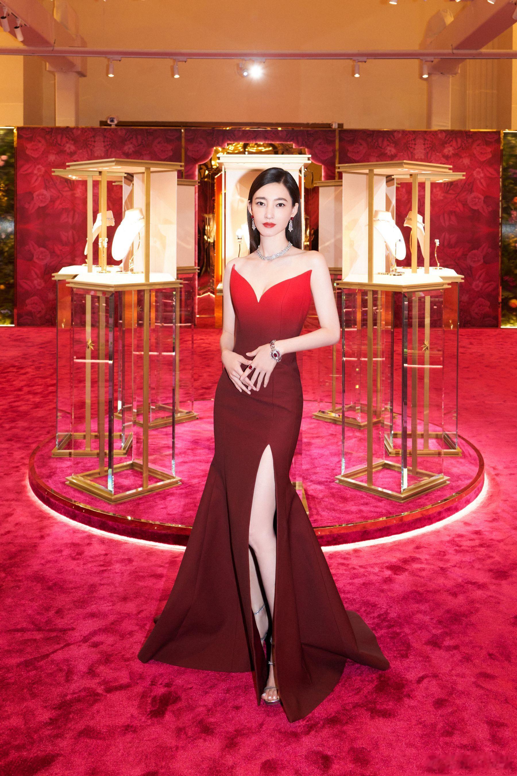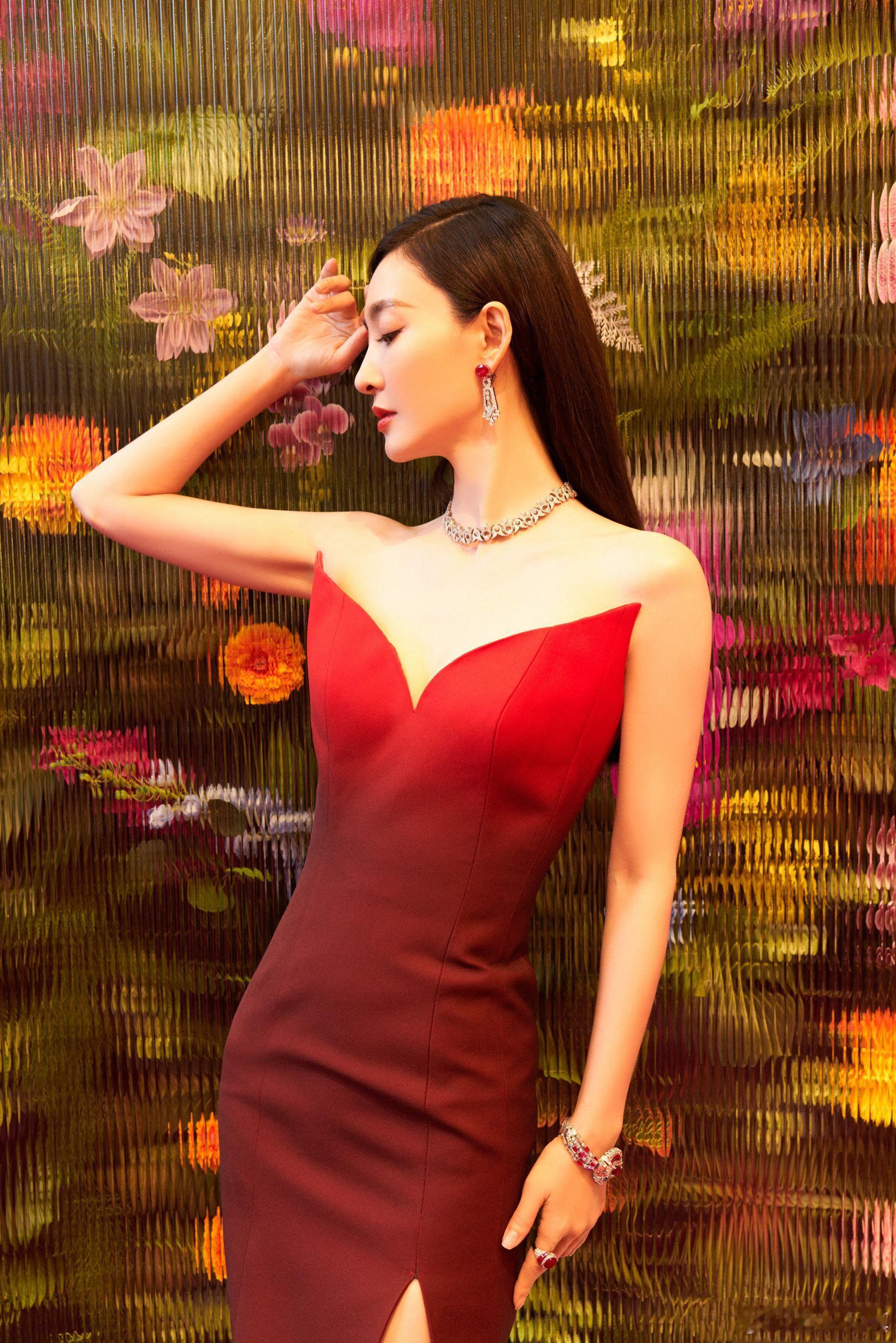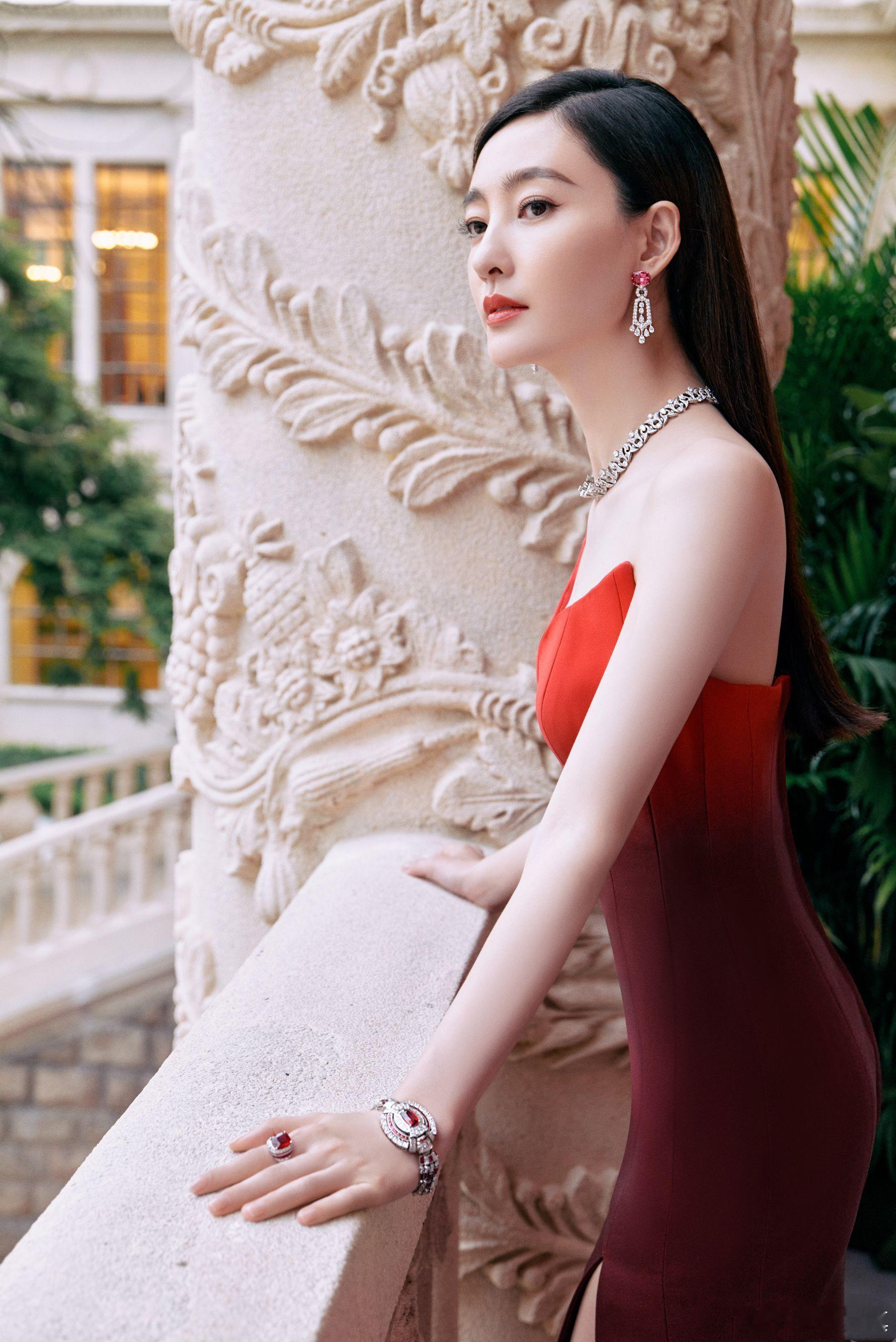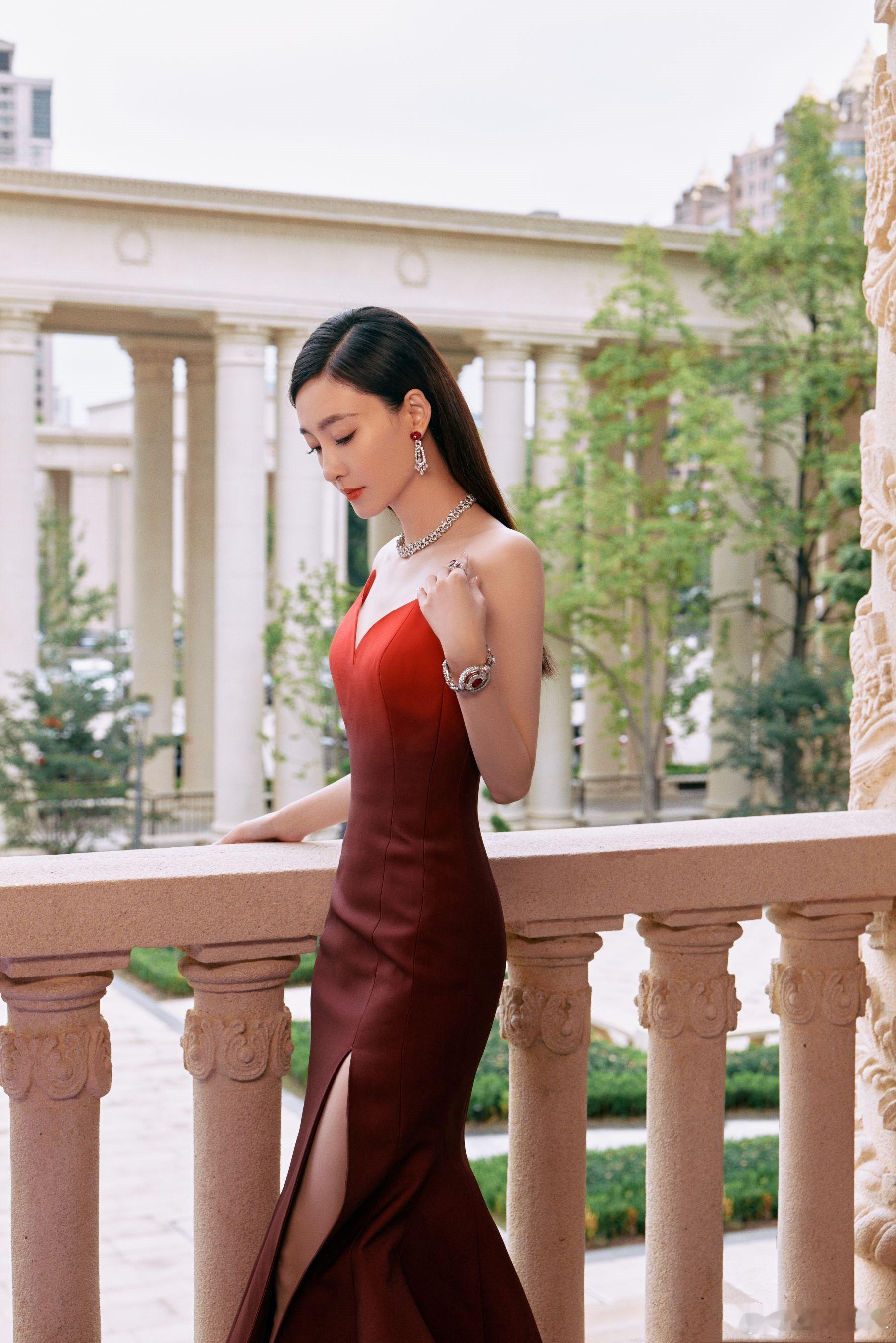 王丽坤红色渐变色长裙气质优雅王丽坤40岁的年龄20岁的身材
